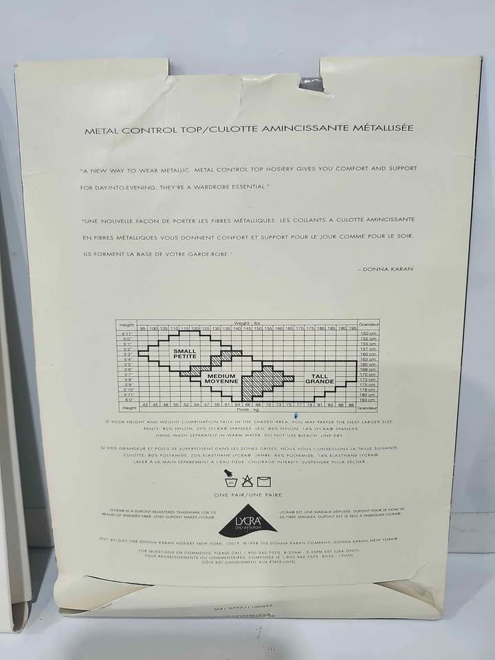 - Donna Karan New York's " Style M41 TALL/GRANDE. It's described as Sheer Jersey, with a CONTROL TOP/CULOTTE AMINCISSANTE, and features a SILVER/ARGENT METAL/METALLISÉE finish.