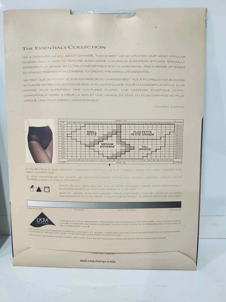 - Donna Karan New York's " The Essentials Collection Satin Sheer tights or pantyhose. These hosiery items are known for their satin sheer finish and often feature a control top for shaping and support.