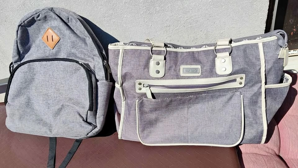 I'm selling a Baby Essentials backpack and a Carter's diaper bag combo. Both items are in great condition and have been well-maintained. The backpack is perfect for quick trips, while the Carter's diaper bag offers ample space and compartments for longer outings.