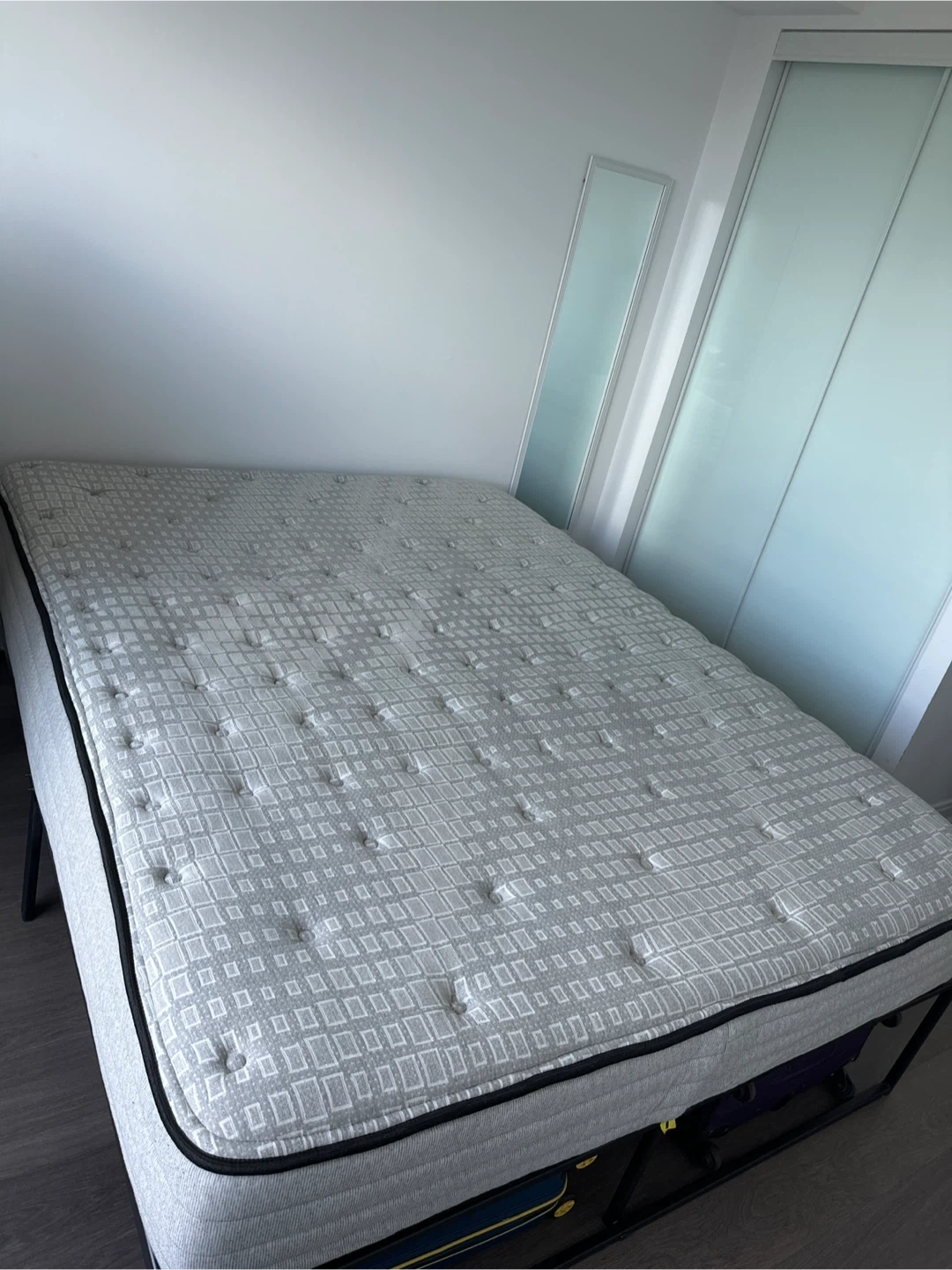 20Queen Bed Frame • Model: Black Zinus Metal Frame. • Size: Queen. • Condition: Great condition. High clearance for storage. • Price: $100 SEALY Queen Mattress • Brand: SEALY. • Size: Queen. • Condition: Okay condition, clean, and guaranteed no bed bugs. • Price: $30 Bundle Deal • Buy both the Frame + Mattress for $120 (Save $10). Pick-up only. Serious inquiries welcome!
