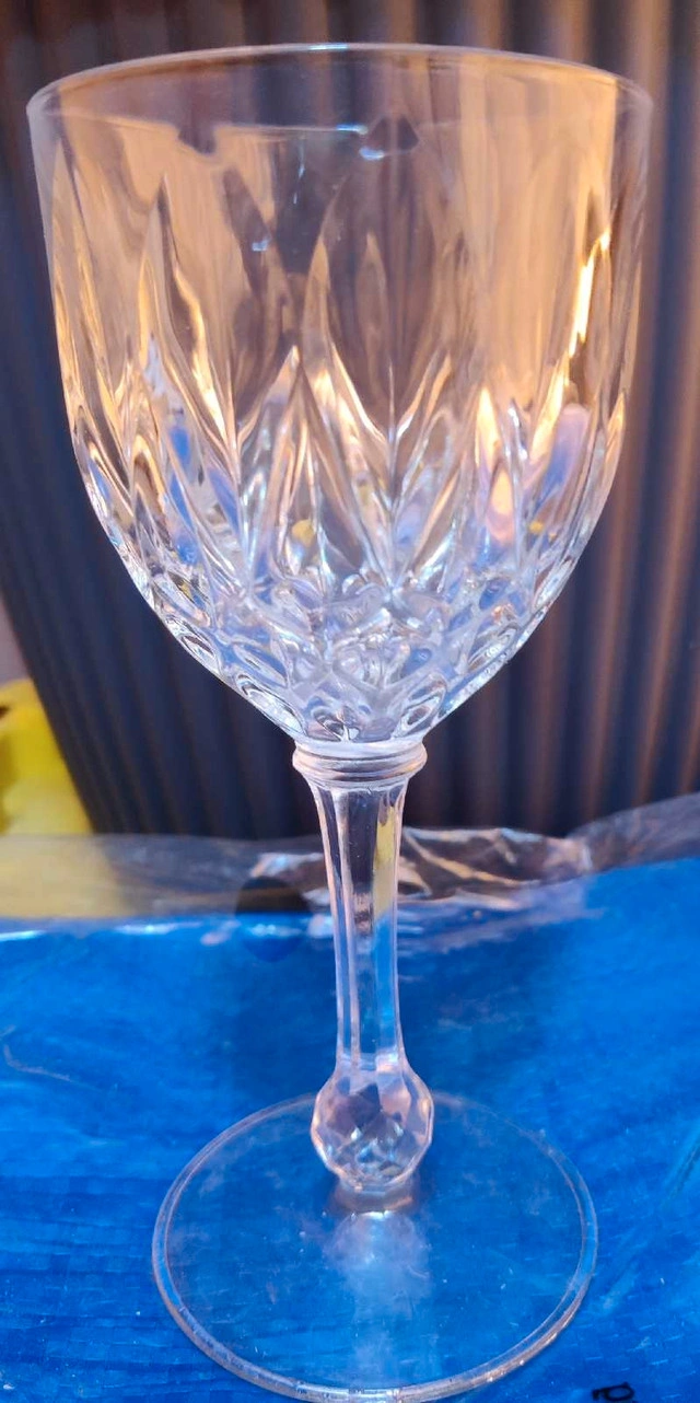 Elevate your dining experience with this elegant set of 11 glass stemmed wine chalices, each featuring a beautiful cut-glass design. These chalices are in perfect condition, ready to add a touch of sophistication to your next dinner party or special occasion. * Classic stemmed design * Intricate cut-glass pattern * Ideal for wine or water * Perfect for formal or casual settings Cash only. (Although only 9 are pictured this is a set of 11)