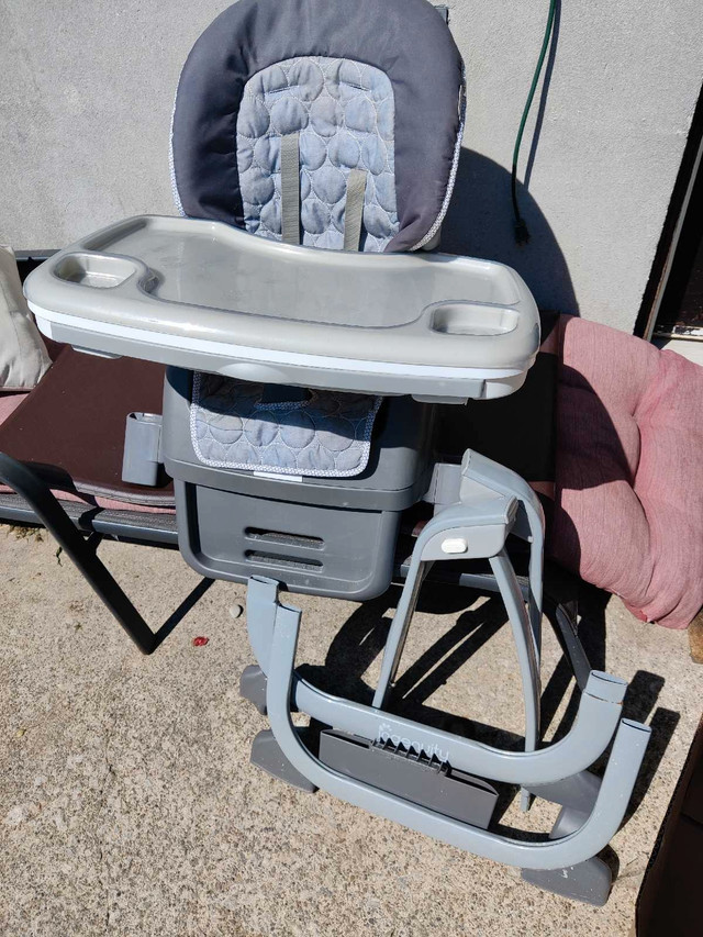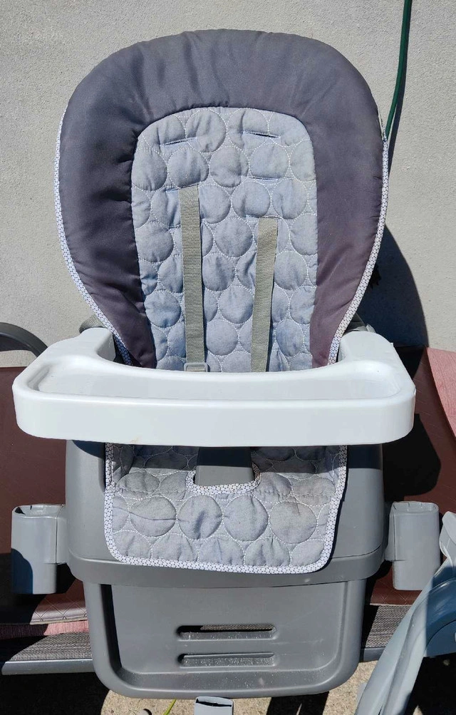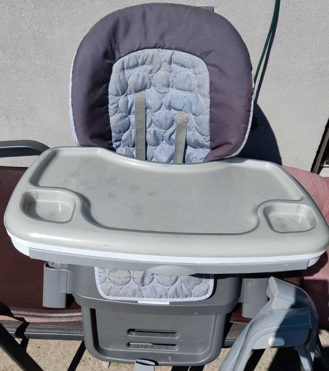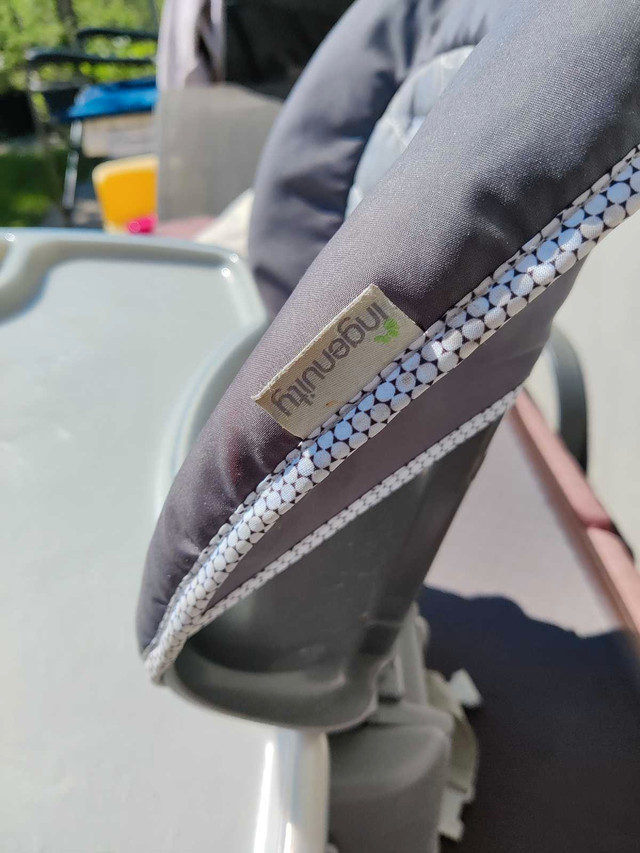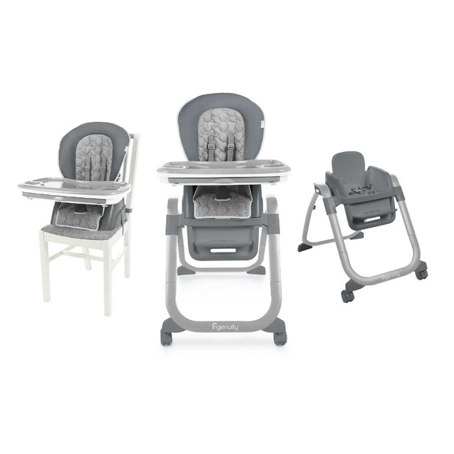 This Ingenuity SmartServe 4-in-1 High Chair in Connolly offers versatility as it grows with your child, functioning as a full-size high chair, booster seat, and toddler chair. In great condition and perfect working order. This adaptable high chair provides a comfortable and safe feeding experience from infancy through the toddler years. Key features include: * 4-in-1 design: Converts to different stages * Adjustable height and reclining positions * Removable and dishwasher-safe tray * Easy-to-clean seat pad * Compact folding for storage