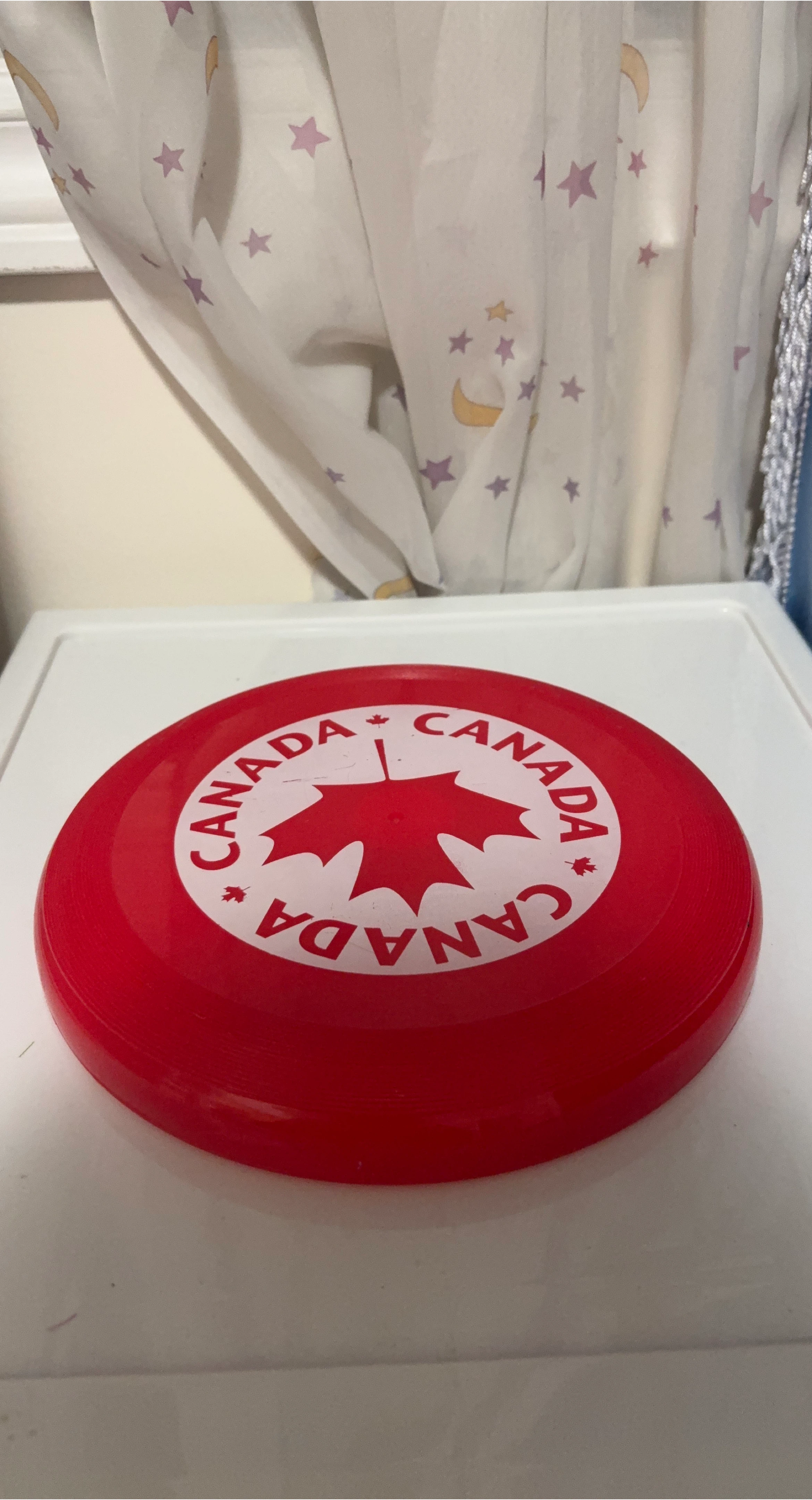 10Selling a red frisbee with a Canadian maple leaf design. It's perfect for some fun in the park or at the beach! It's lightweight and easy to throw, making it great for all ages and skill levels