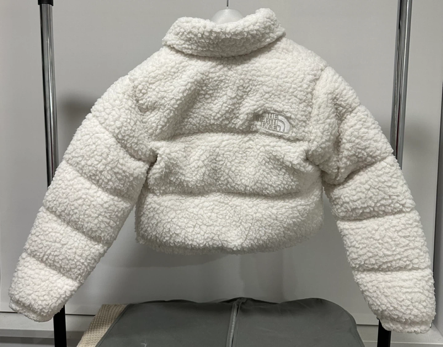 The North Face Nuptse Sherpa quilted fleece jacket! It's a size XS and in a beautiful Gardenia White colour. Comes with garment bag. Delivery is available. Cash payments only.