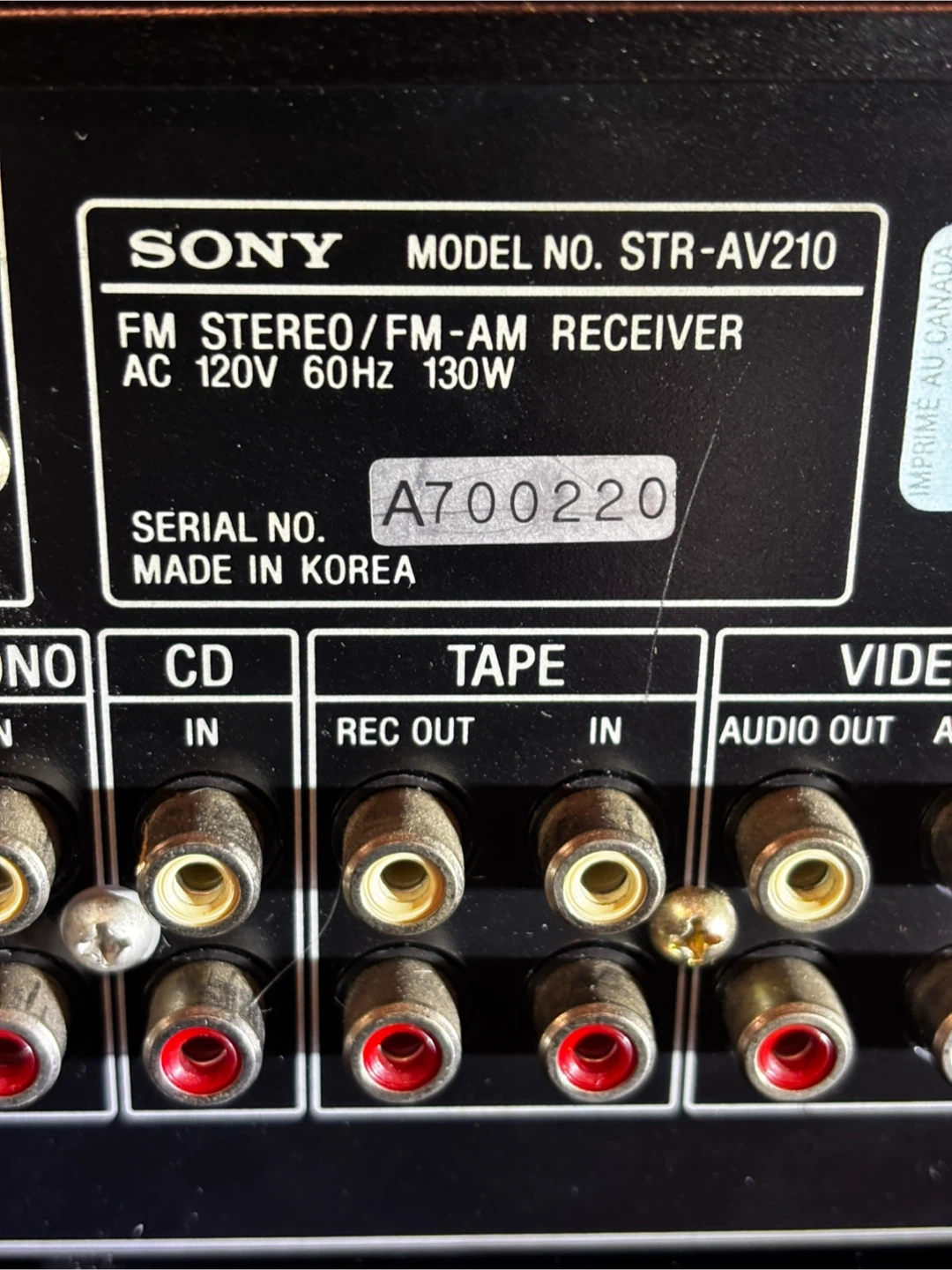 Sony STR-AV210 FM Stereo/FM-AM Receiver