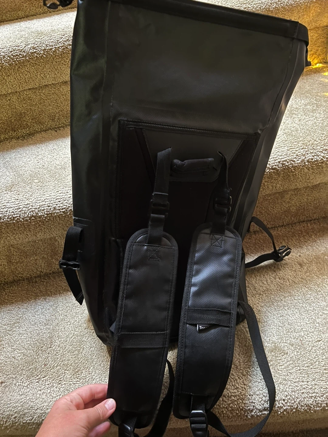 Selling a Tropicfeel Waterproof Daypack in core black! It's a great backpack for everyday use and is waterproof, so you don't have to worry about your belongings getting wet. There is some wear on the shoulder strap, as shown in the photos.