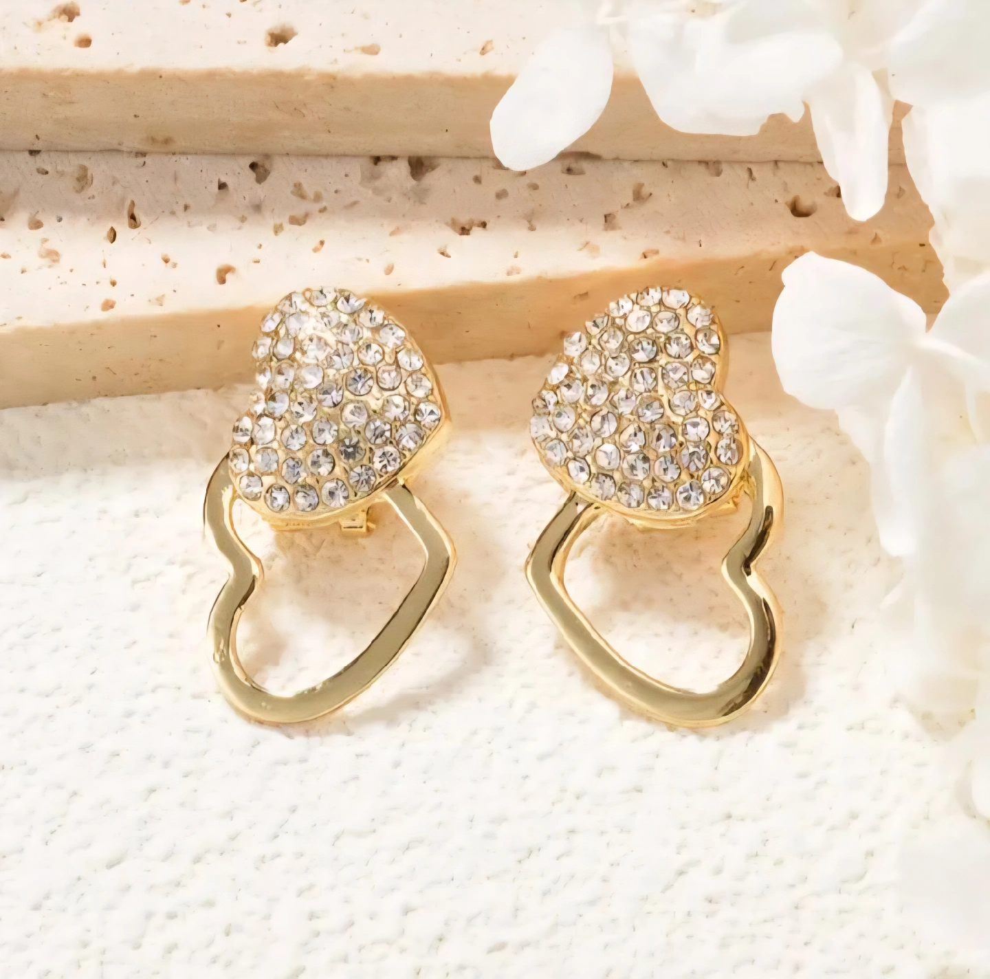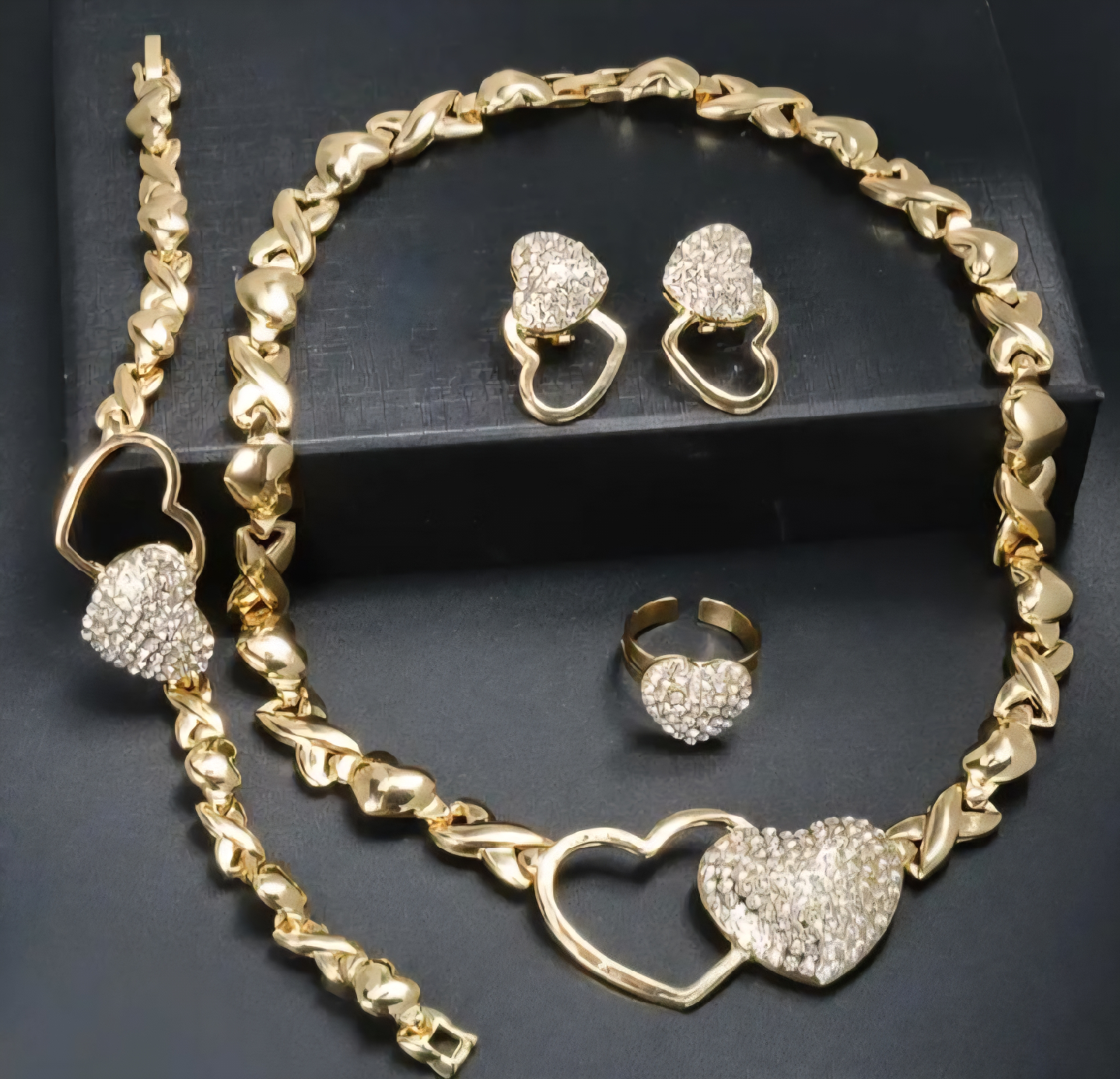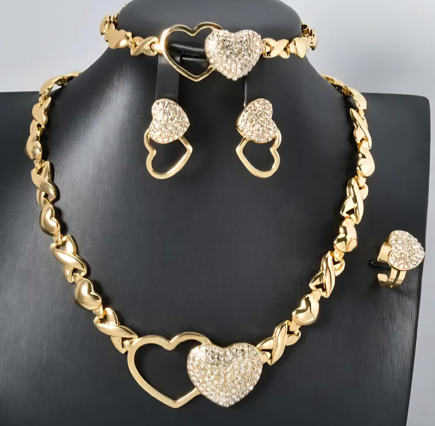Gold Heart Jewelry Set - Necklace, Bracelet, Ring, Earrings