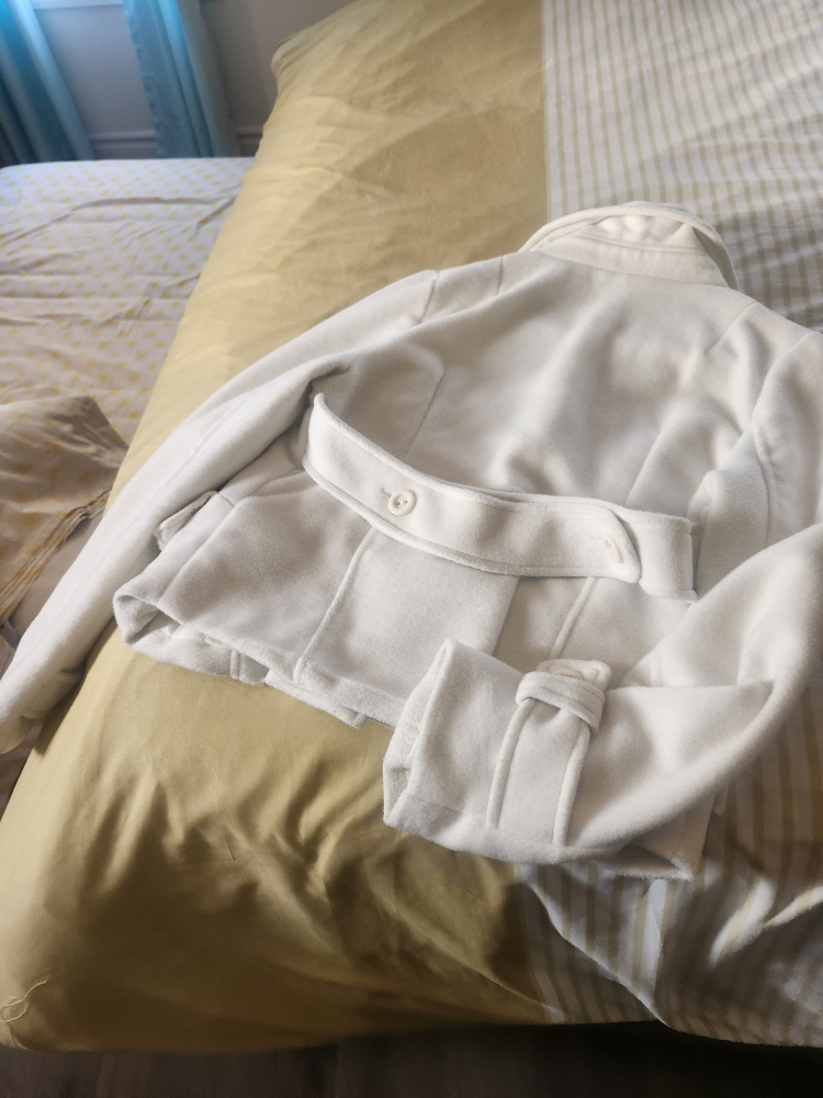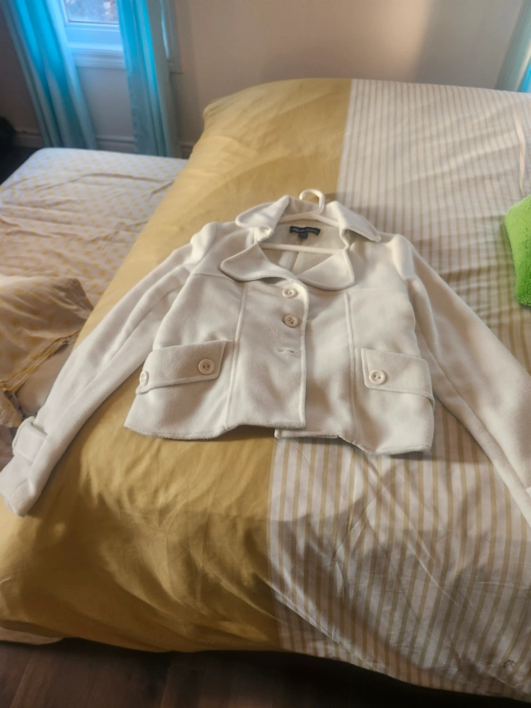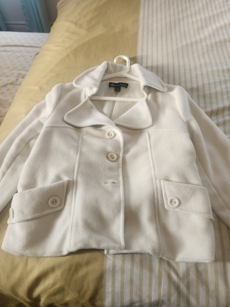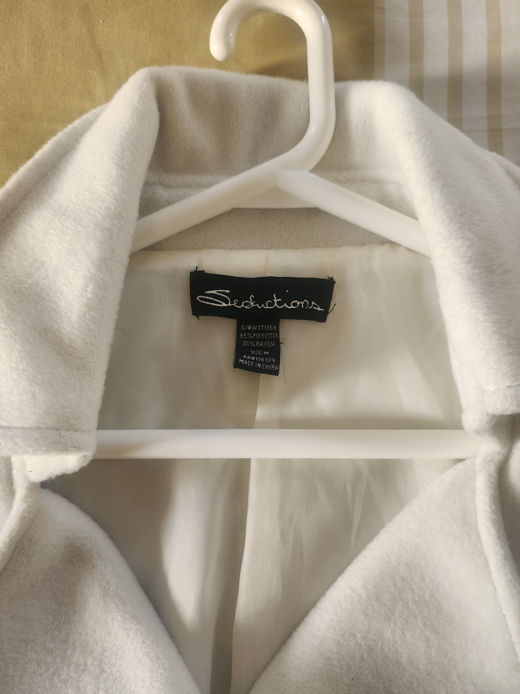 Selling a Seductions white jacket in size medium. It's made of 65% polyester and 35% rayon. A stylish addition to any wardrobe!