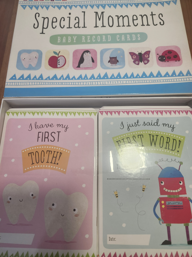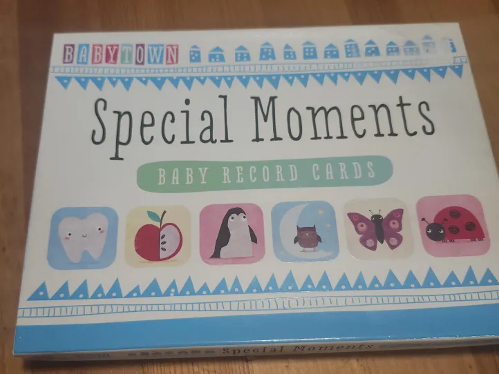 I'm selling a set of Babytown Special Moments baby record cards! These are perfect for documenting all those precious first moments, from the first tooth to the first word. The set comes in its original box and includes a variety of adorable cards to record each milestone. They are in great condition and ready for a new family to enjoy 15 cards in total