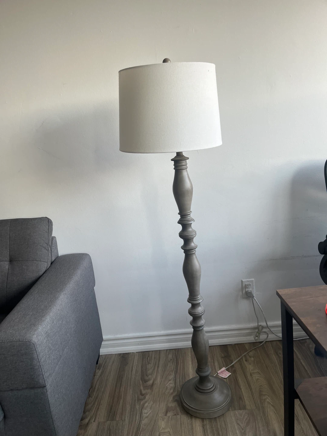 Grey Floor Lamp with White Shade and white bulbincluded