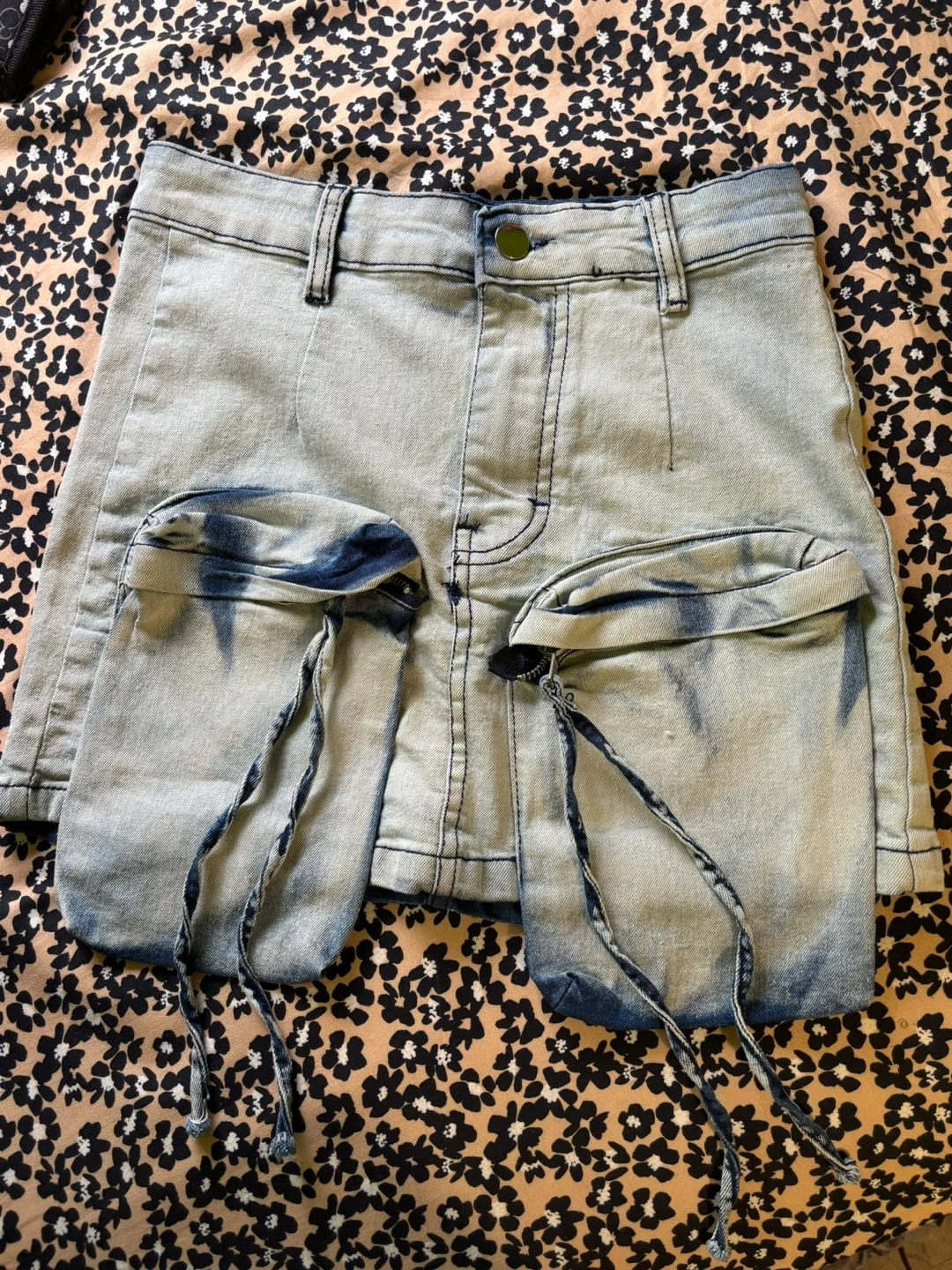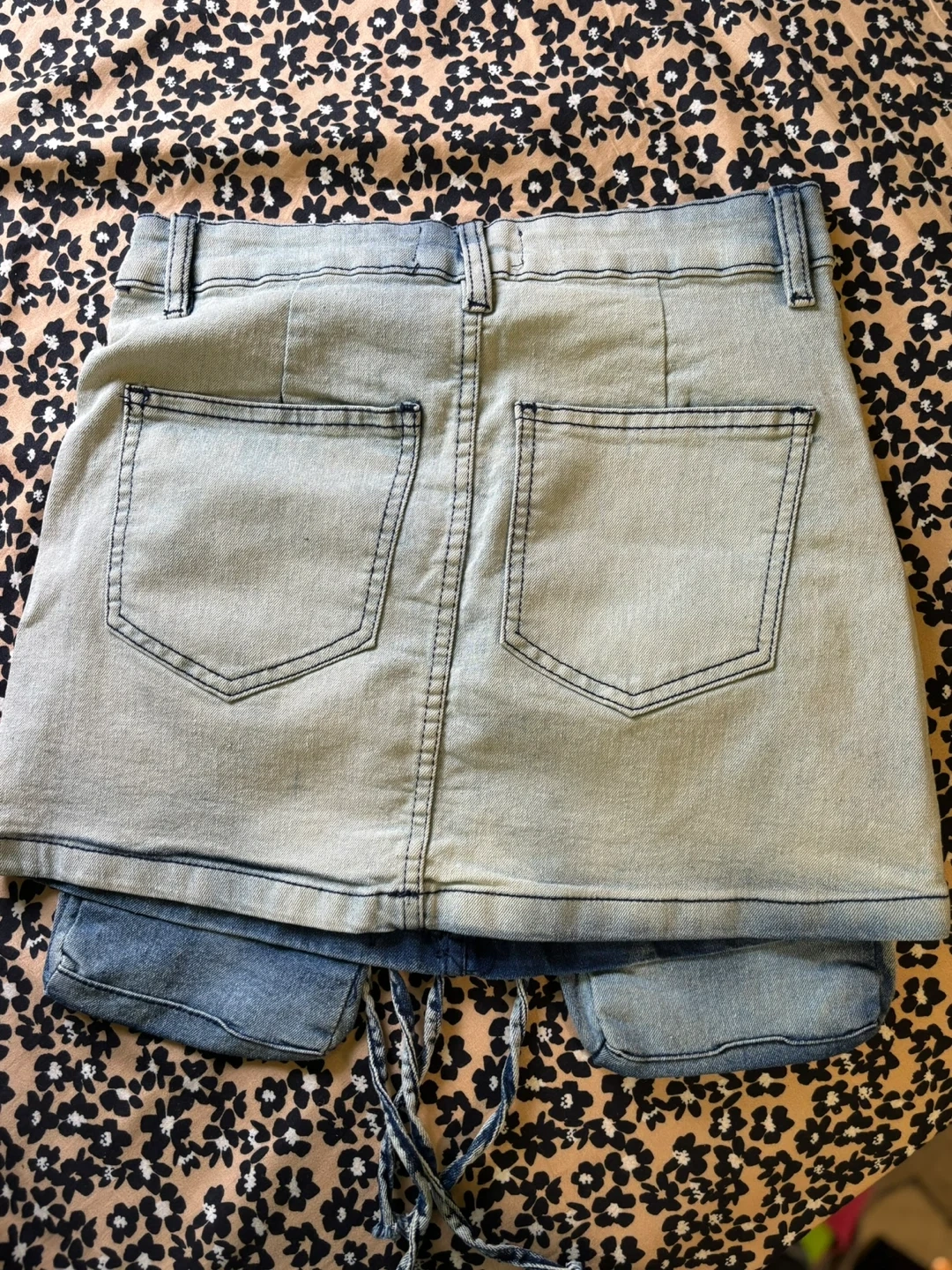 Selling a cute denim mini skirt featuring unique cargo pockets! The skirt has a light wash and a classic mini skirt cut. It's in great condition*Never worn*