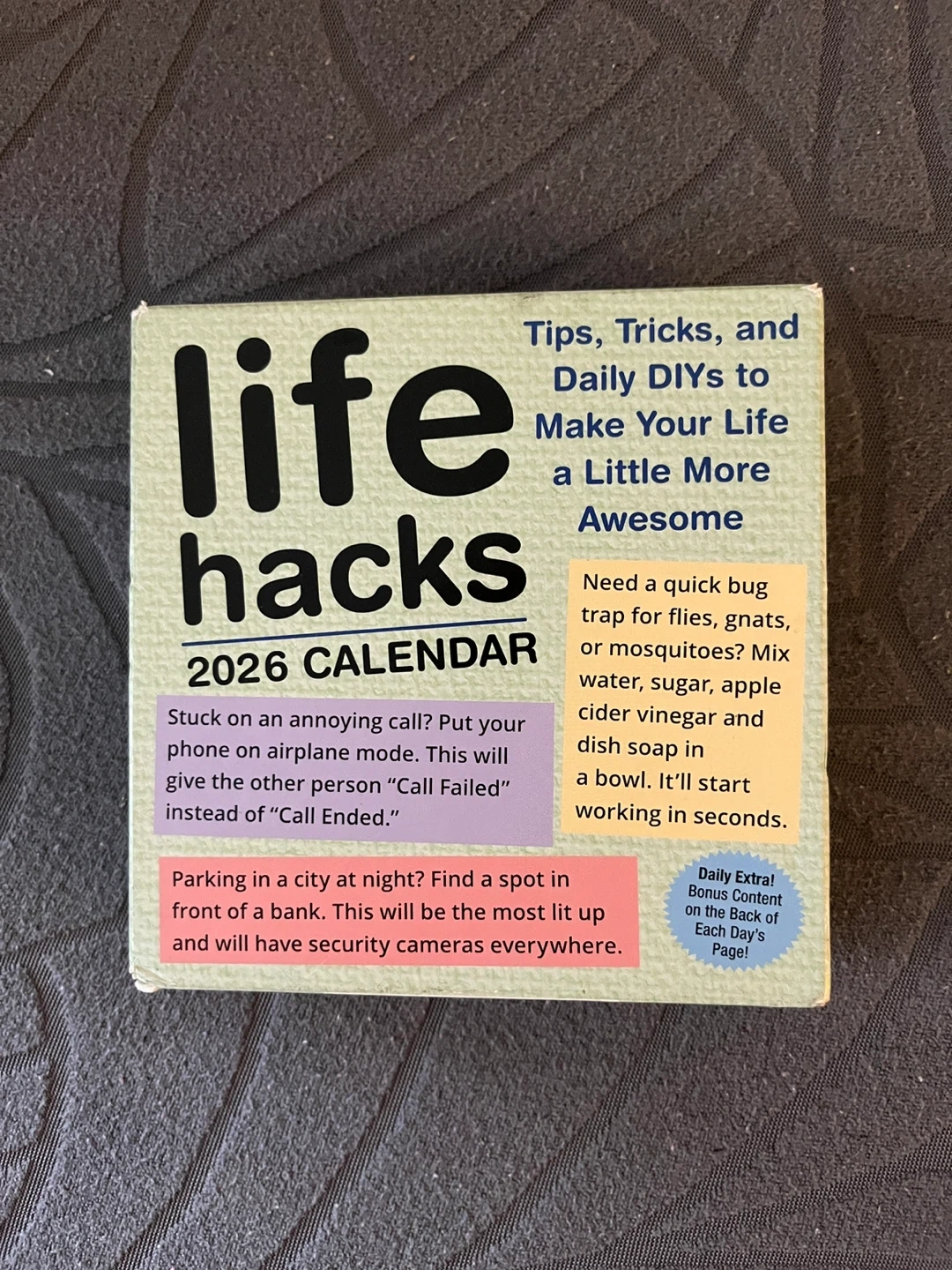 Selling a Life Hacks 2026 Day-to-Day Calendar. It's full of handy tips, tricks, and DIYs to simplify your life!