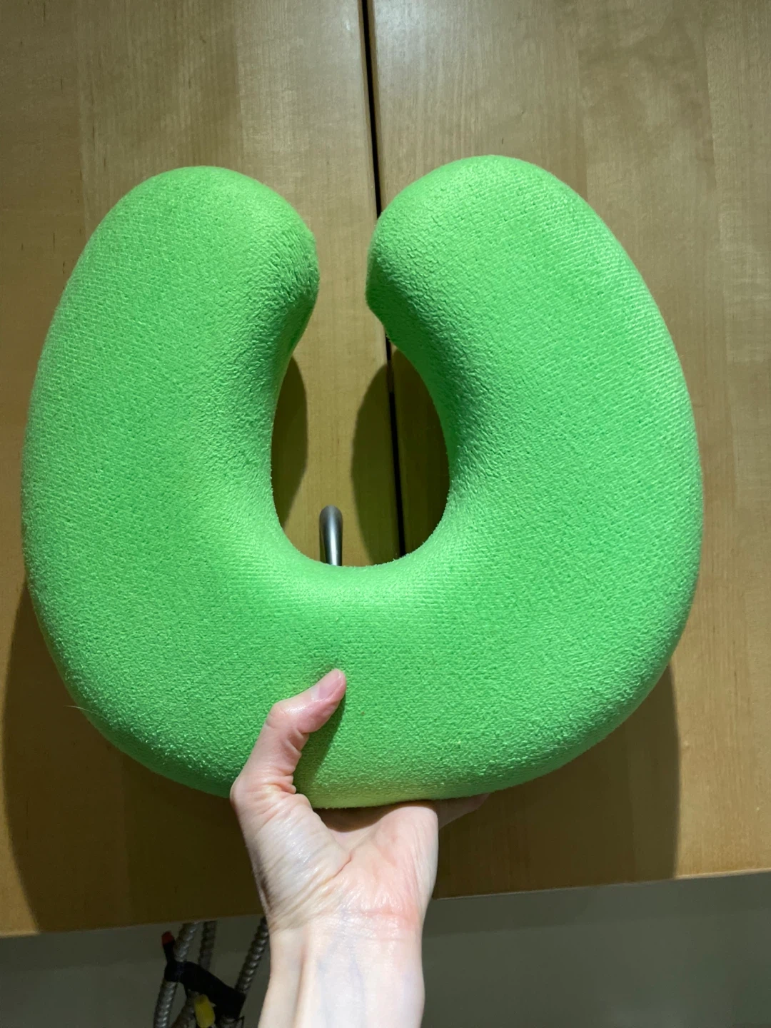 Offering a comfy green travel memory foam neck pillow with removable cover. It's in great condition and ready for your next trip. Perfect for long flights or car rides, this pillow will help you relax and arrive refreshed.