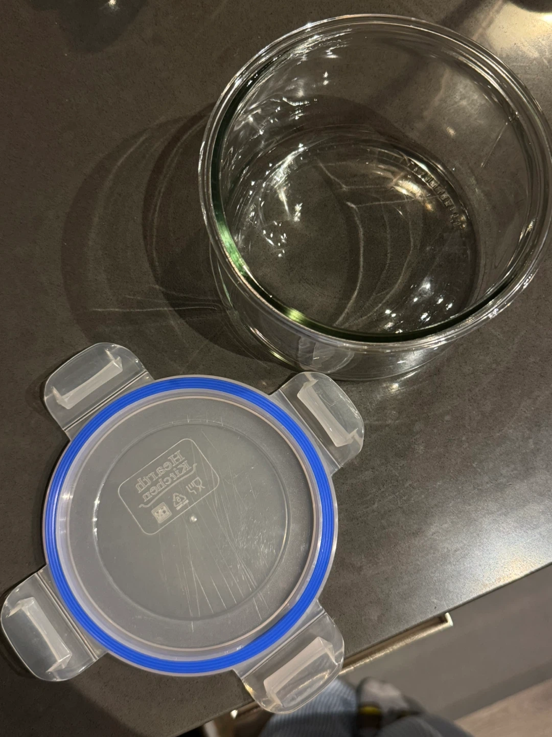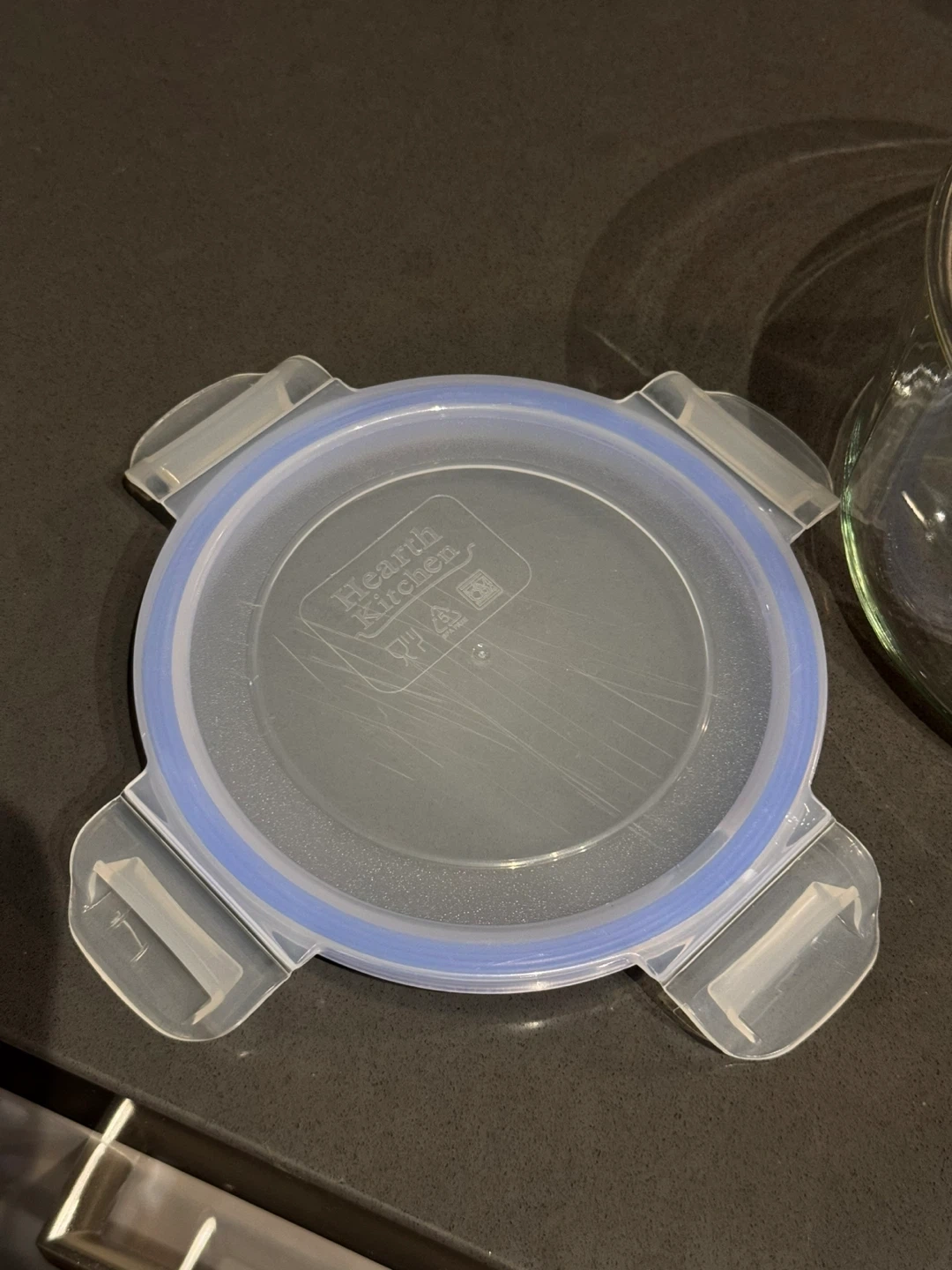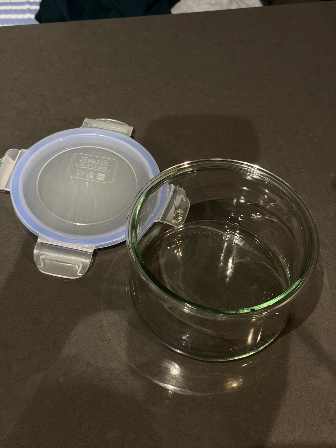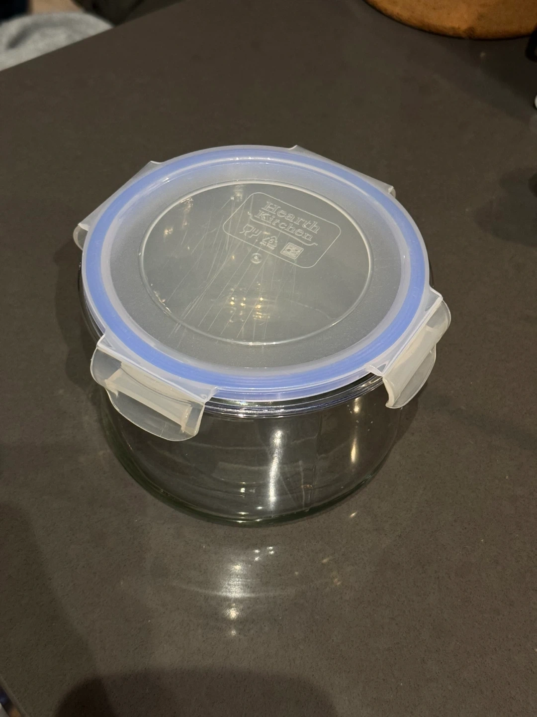 Selling a Hearth & Hand glass food storage container with a blue-rimmed lid! It's in great shape and perfect for storing leftovers or meal prepping Microwave and dishwasher safe