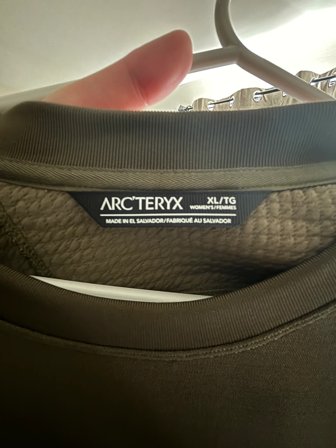 Selling a women's Arc'teryx fleece crewneck in size XL. It's in great condition and ready for a new home! The colour is a nice, neutral olive green.