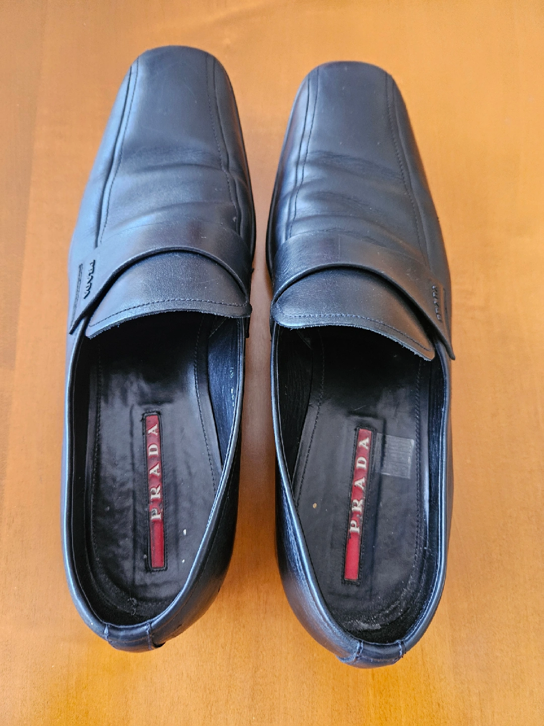 Selling a pair of classic Prada black leather loafers. Size is 12-13. Fits more like 12.5 or so...