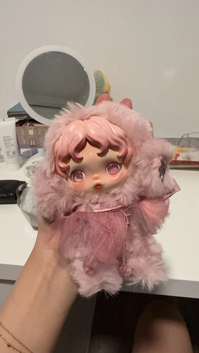 Selling a cute pink plush doll! It has a sweet, innocent face and is dressed in a fluffy pink outfit with a delicate tulle skirt. It's in great condition and would make a lovely addition to any collection or a sweet gift for someone special