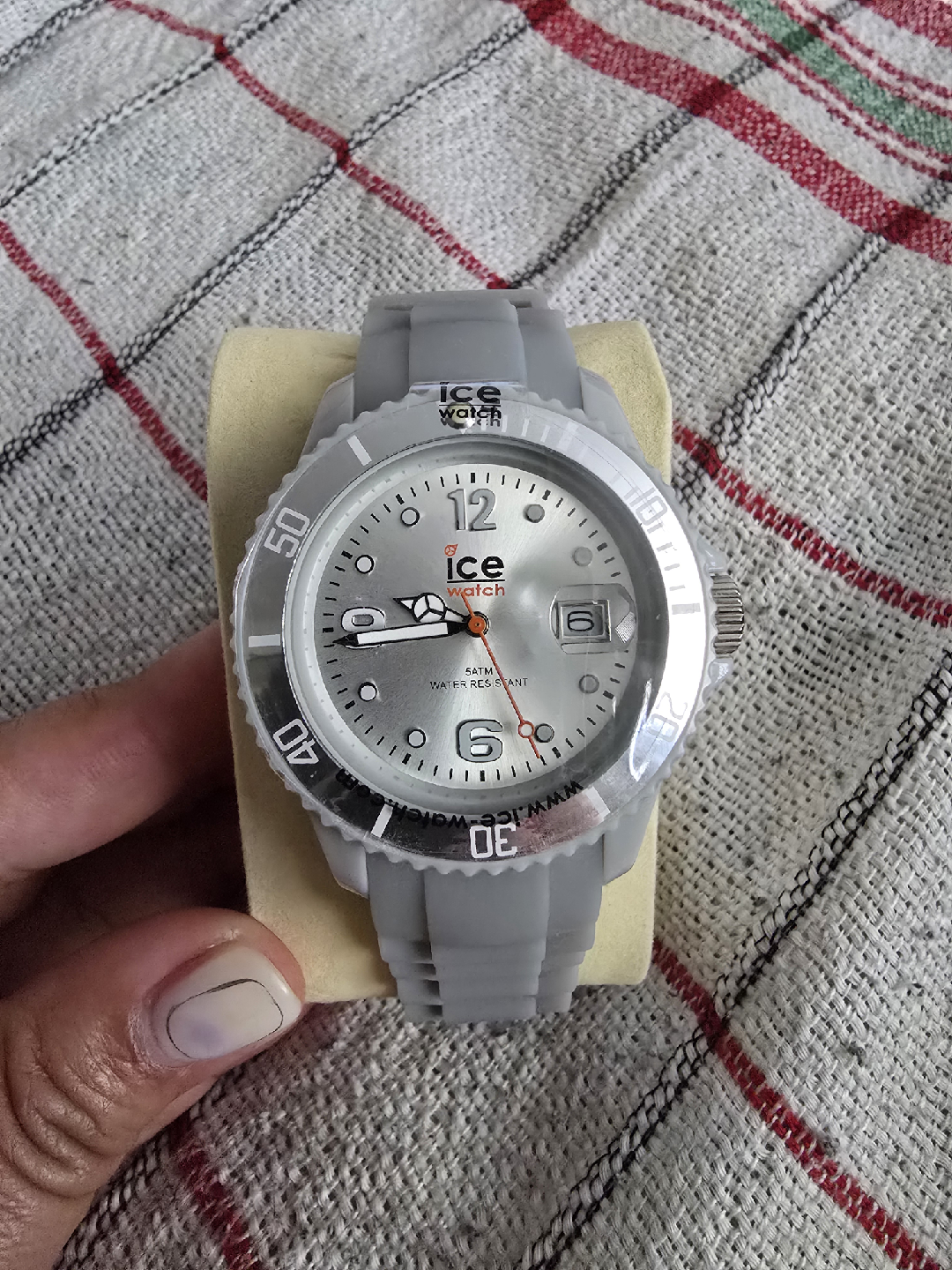 Selling an Ice Watch in grey. It's water resistant up to 5ATM. Feel free to message me if you're interested! This is new, no box though, never been used. Needs battery. For Unisex