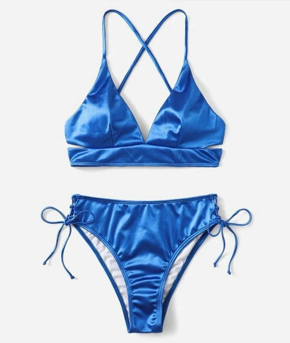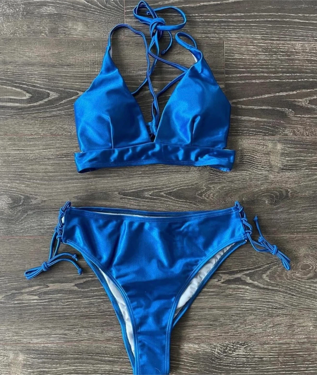 A beautiful blue bikini set! Perfect for the summer, this set is in great condition and ready for a new home. The material is soft and comfortable, making it ideal for swimming or lounging by the pool. The vibrant blue colour is sure to turn heads!