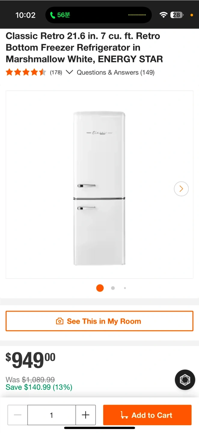 Selling a Classic Retro 21.6 in. 7 cu. ft. Retro Bottom Freezer Refrigerator in Marshmallow White, ENERGY STAR. Originally priced at $949! Selling it for 250. Pick up only