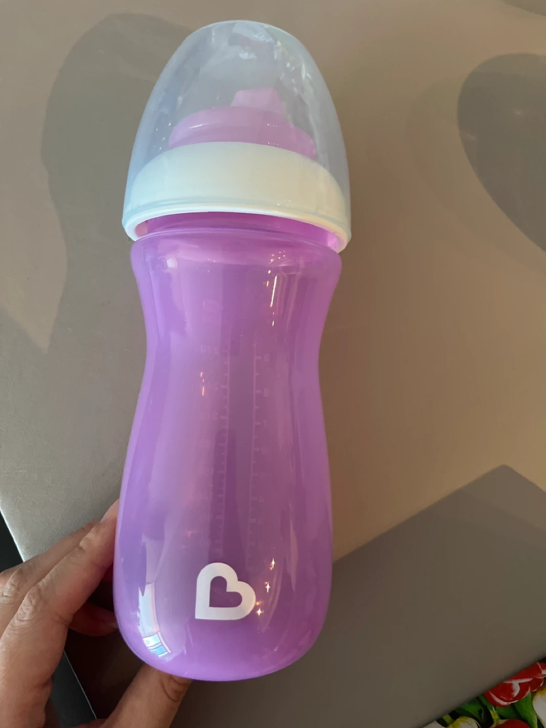 Selling a Munchkin Latch baby bottle in purple! It measures up to 10 fl oz or 300 ml. Great for feeding your little one