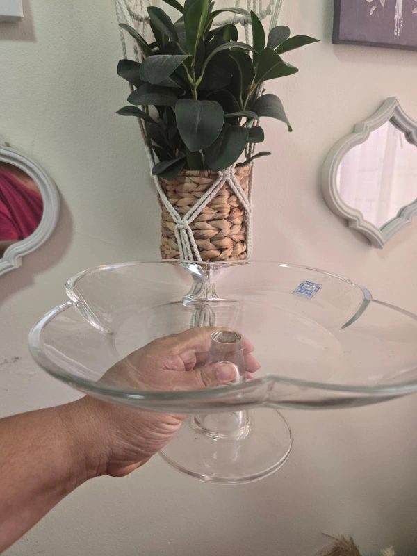 Selling a beautiful Pasabahce clear glass fruit serving plate! It's perfect for displaying desserts, appetizers, or as a decorative centerpiece. It adds a touch of elegance to any table setting