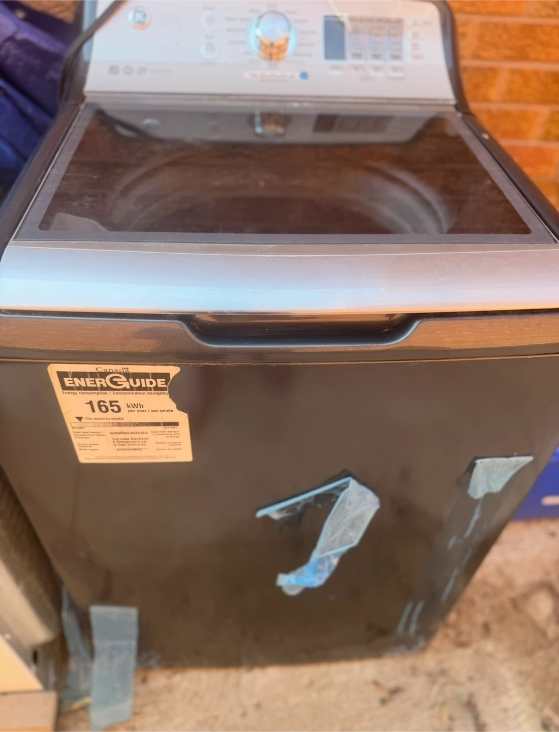 15Selling a GE washing machine. It consumes about 165 kWh per year, according to the energy guide. It works very well and in good condition .