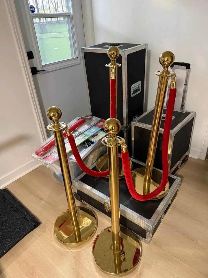 • Gold stanchions + red velvet ropes (VIP setup)