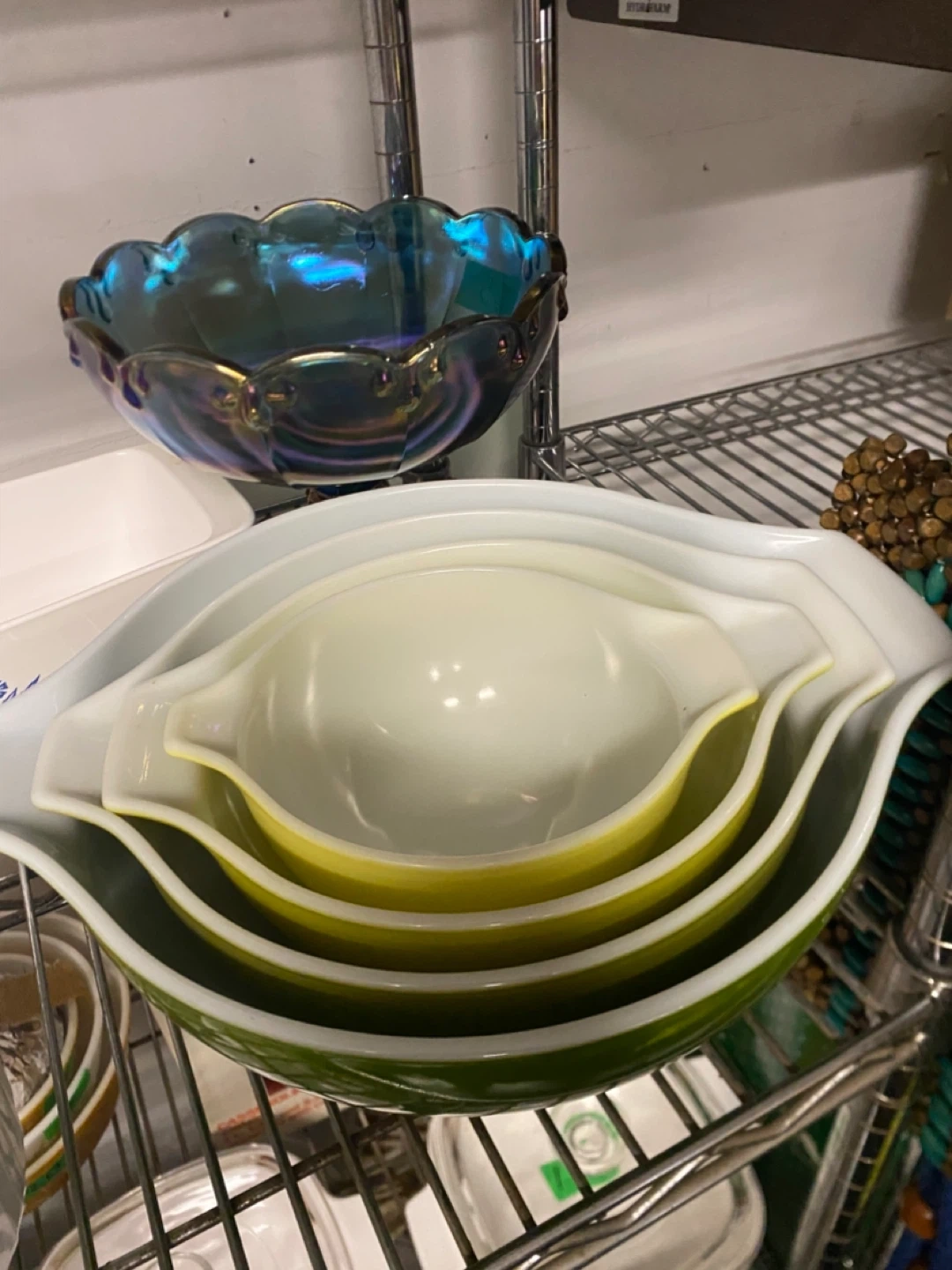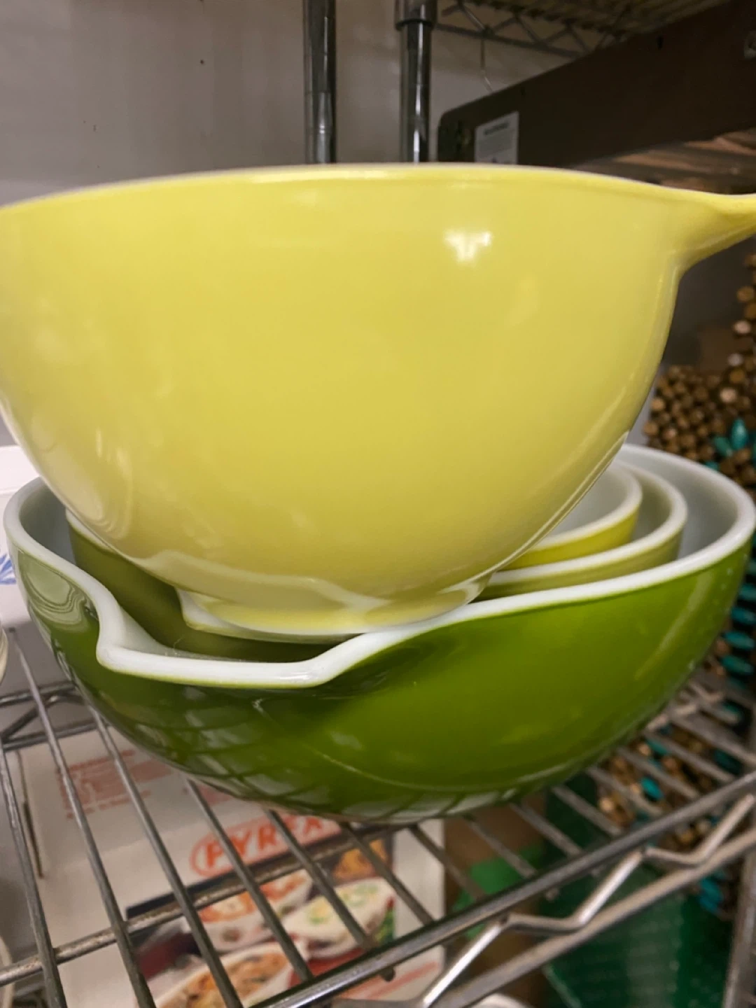Selling my Beautiful vintage set of RARE Pyrex Cinderella Bowls ! This set includes various sizes in a cheerful yellow and green color set. Perfect for baking or food prep in your kitchen or simply a very fancy display set.