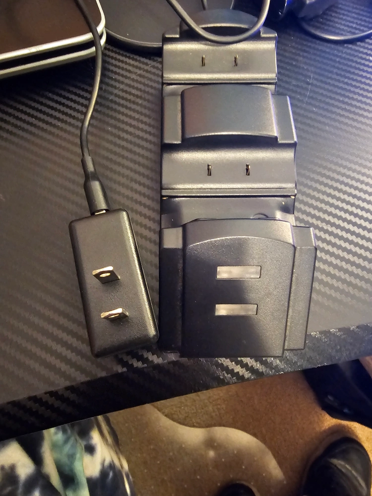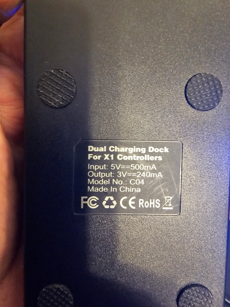 Selling a dual charging dock for X1 controllers. It has an input of 5V==500mA and an output of 3V==240mA. The model number is C04. with one battery. It is black and in good condition. control not included