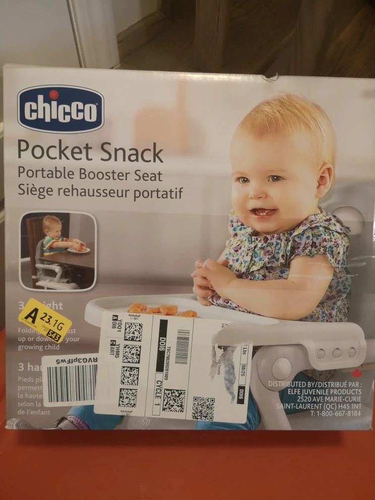 Selling a Chicco Pocket Snack portable booster seat! It's in like-new condition and comes in the original box.