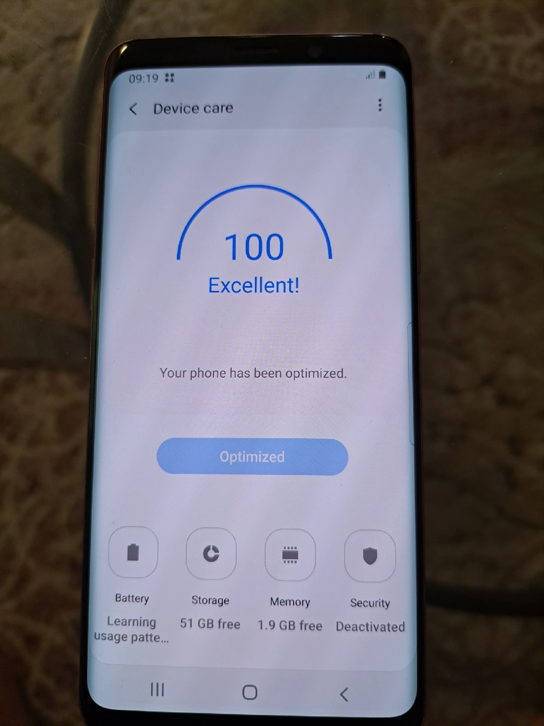 Selling a Samsung Galaxy S9 in excellent condition! The phone has 51 GB free storage and 1.9 GB free memory. Battery health is excellent. Feel free to message me if you're interested!