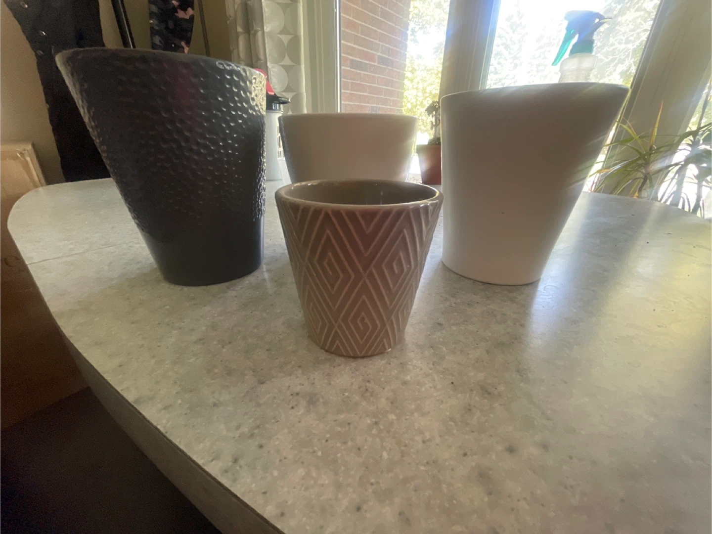 Selling all for $10 .few different decorative flower pots. They're in great shape and ready for your plants! Perfect for adding a touch of style to your indoor or outdoor space.