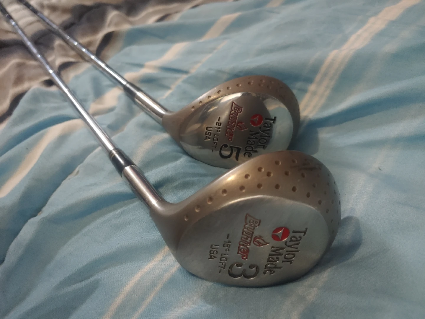 Selling a pair of TaylorMade Burner golf clubs! One is a 3 wood with 15° loft, and the other is a 5 wood with 21° loft.
