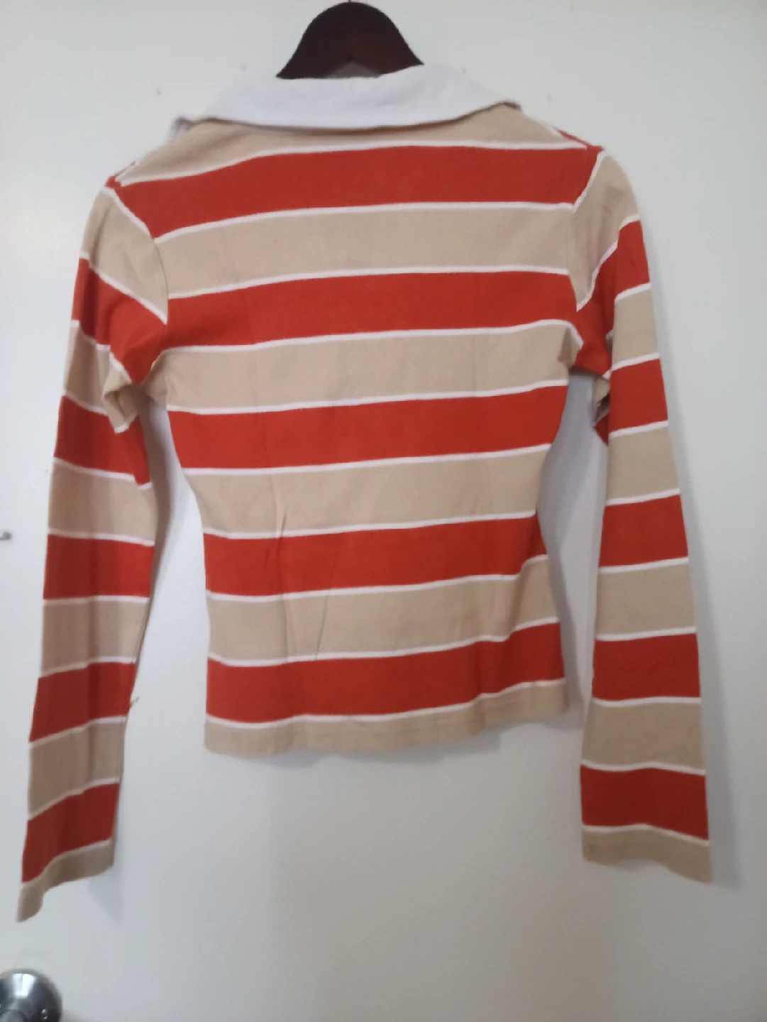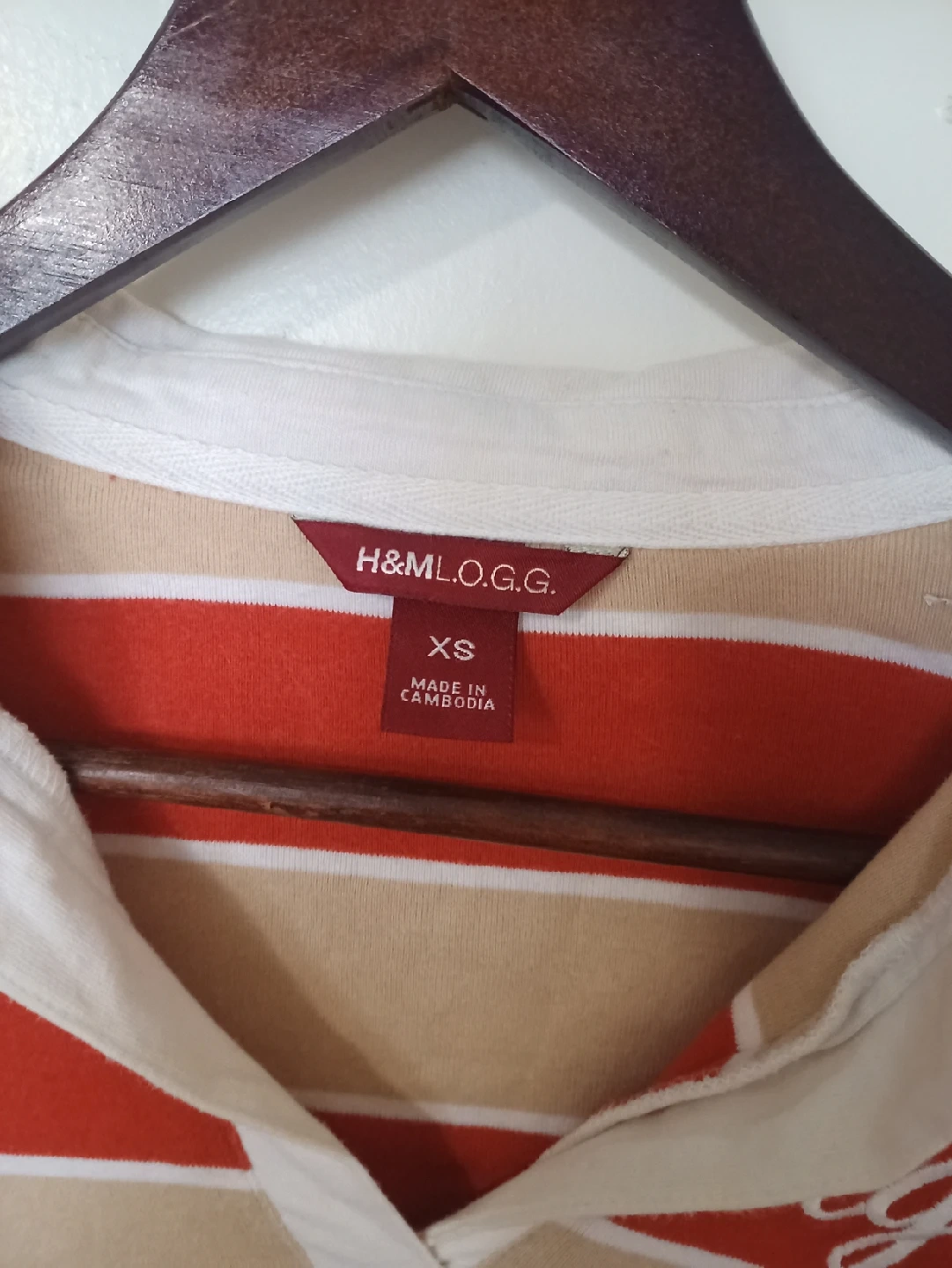 Selling an H&M L.O.G.G. long-sleeved top in size XS. It features a fun orange and beige striped pattern. Perfect for adding a pop of colour to your wardrobe!