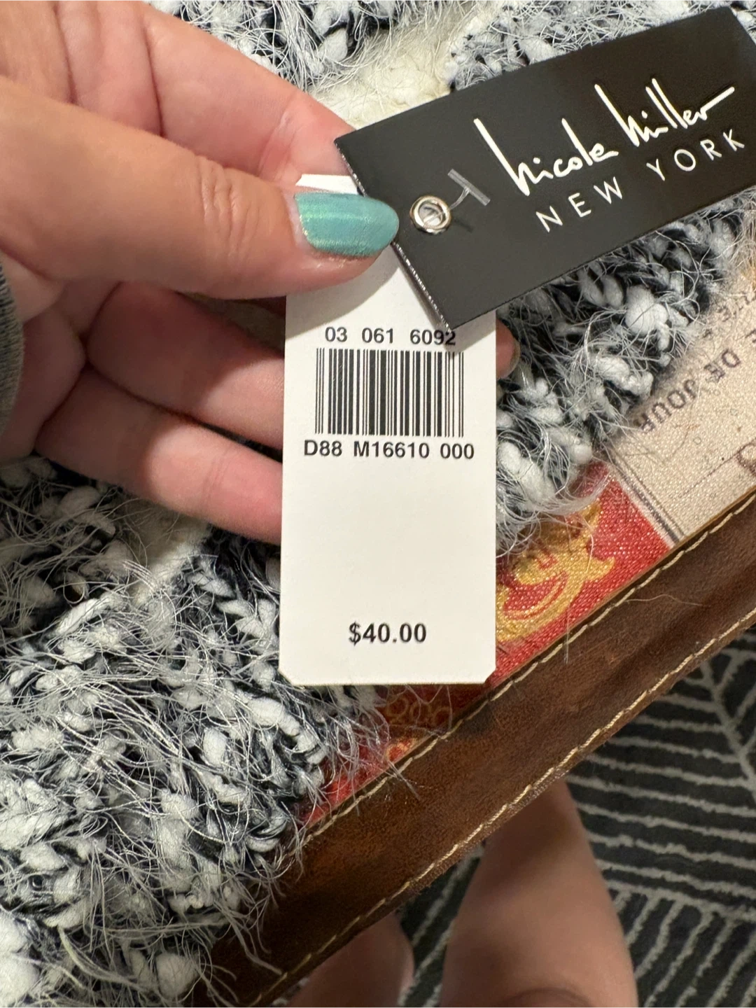 Selling a super cozy Nicole Miller New York scarf! It's in great condition and has a lovely soft texture. The original tag is still attached and shows it was originally $40. Perfect for adding a bit of warmth and style to any outfit!