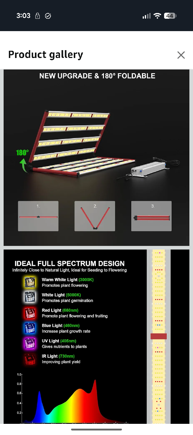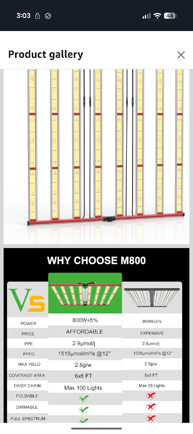 Selling an M800 800W LED grow light! It features a new upgrade and is 180° foldable.