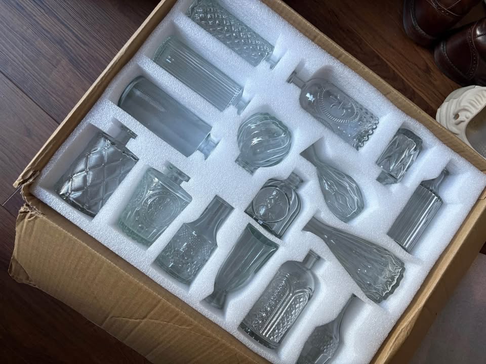 Two boxes of bud vases, great for weddings or at home decor. Used for our wedding once this year. Missing one bud vase, as shown in photos. 59 bud vases in total. Selling all together. Cash only and pick up only near Yonge & Davisville.