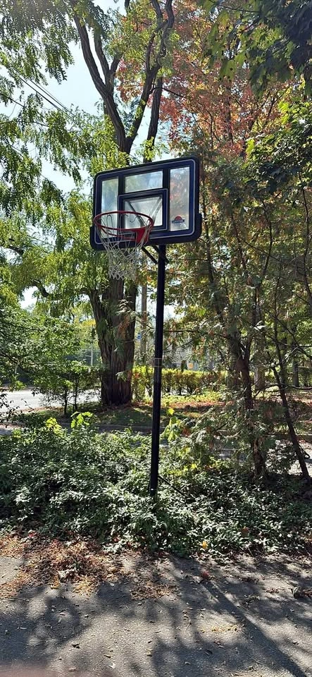10LifeTime brand basketball net. Backboard in perfect shape. No cracks or breaks. Adjustable height. Base is full of sand and heavy to move.