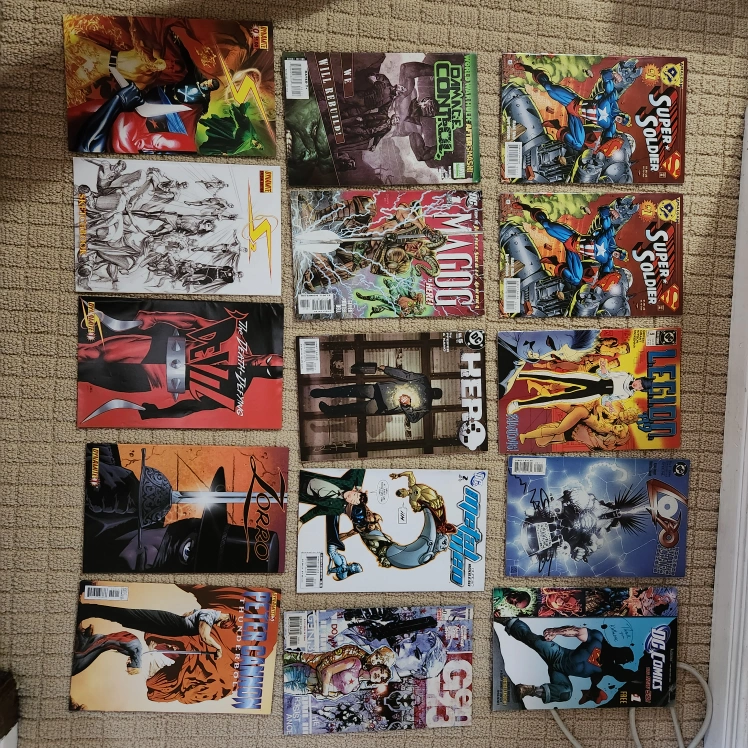 Selling a mixed lot of 16comic books, including titles from DC Comics, Marvel, and others! Some titles include Super Soldier, Damage Control, Magog, and Hero. A fun collection for any comic enthusiast! All in great condition