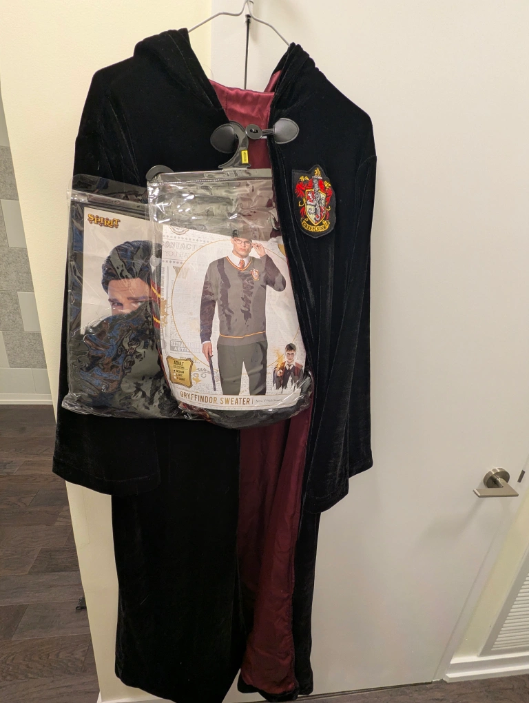 280Selling a complete Harry Potter Gryffindor costume set! Includes the robe, sweater, tie, glasses, wig and wand. Perfect for any Harry Potter fan for Halloween or costume parties. Only worn once.