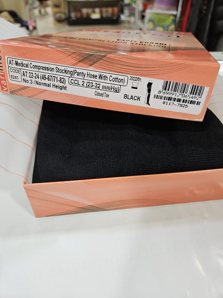 Selling a pair of Varimed medical compression stockings in black. They are size No. 3 and are designed for normal height. These are AT-Medical Compression Stockings (Panty Hose With Cotton) with CCL 2 (23-32 mmHg).