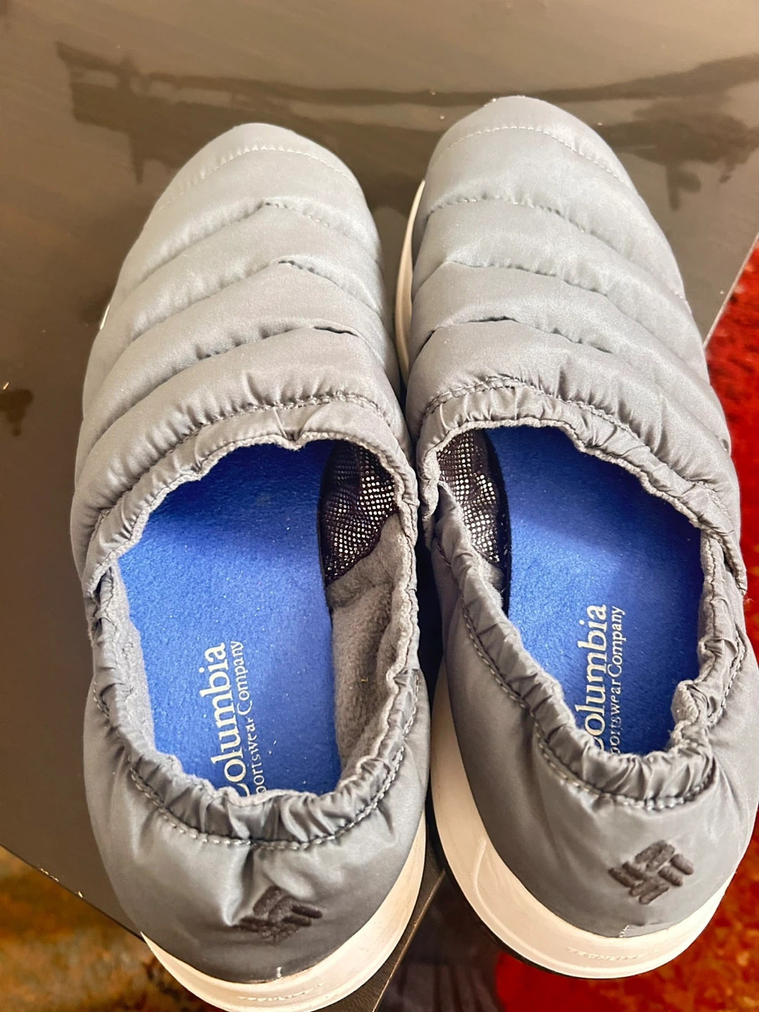 68Comfy Columbia mules in a neutral grey colour! Great for indoor and outdoor wear. Size 8.