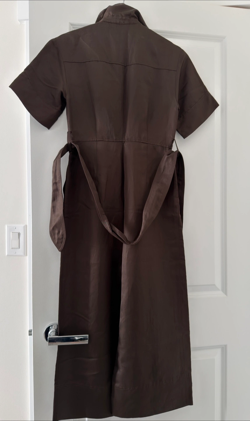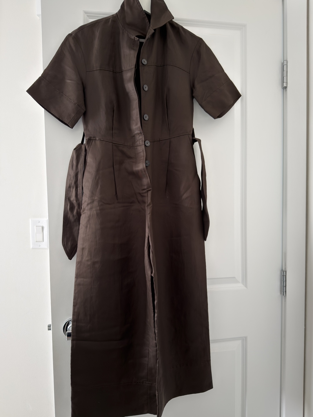Selling a Massimo Dutti jumpsuit in a trendy color of 2025 - brown! It's a size 2 or EU 34 and made from a blend of 42% viscose, 33% linen, and 25% lyocell. Perfect for a stylish and comfortable outfit!