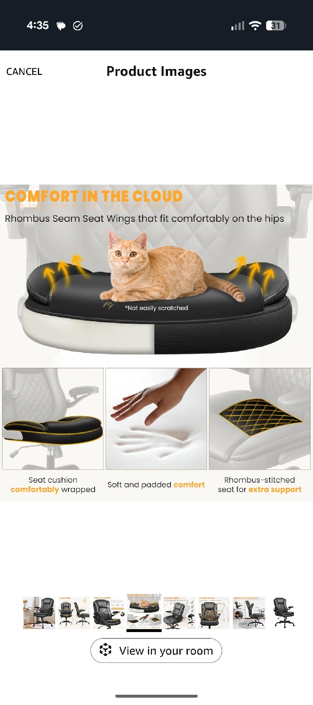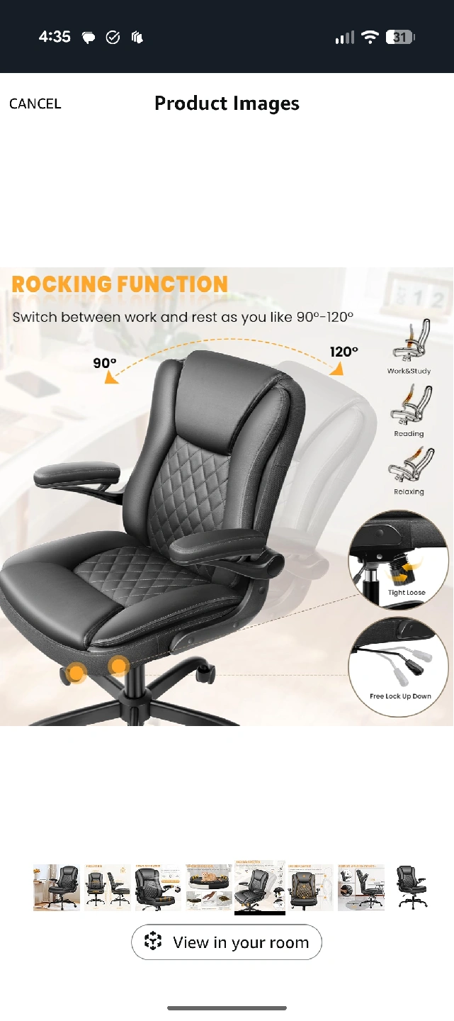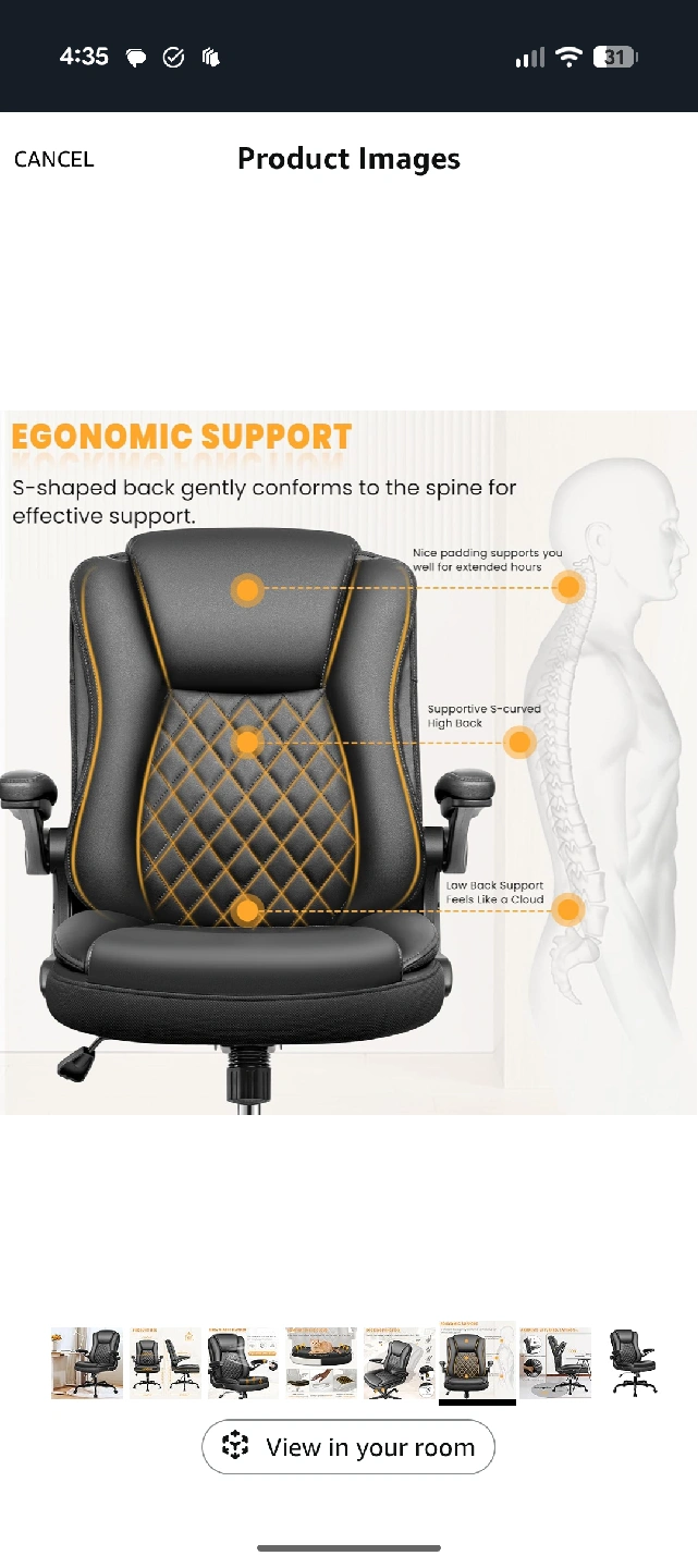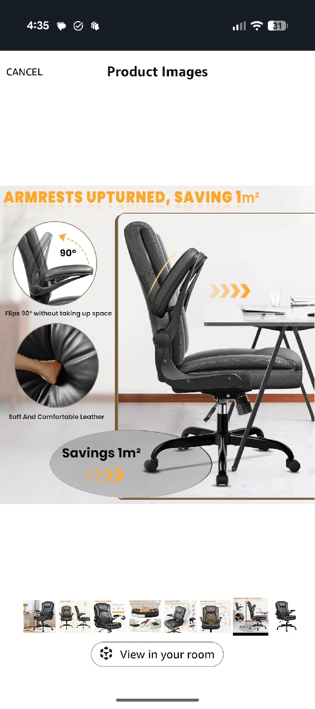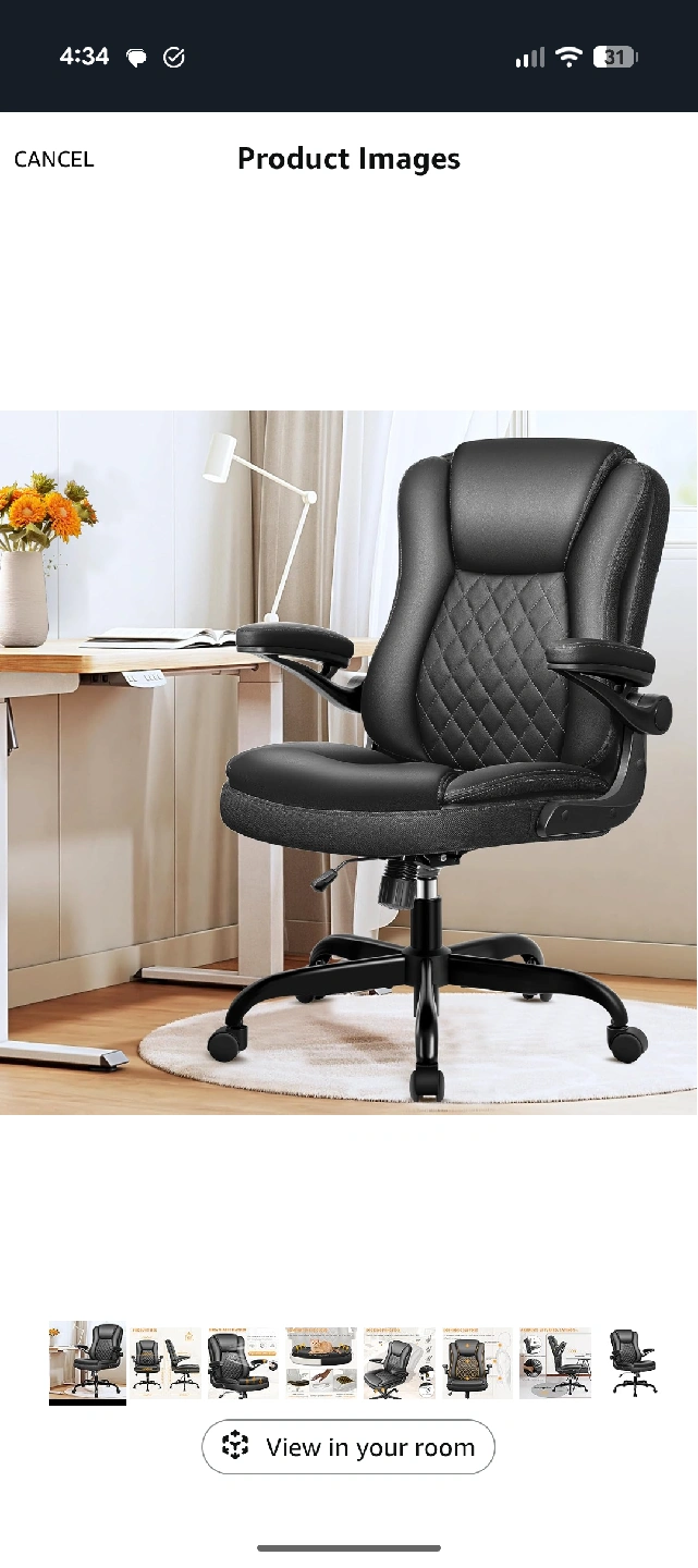 Looking to sell this ergonomic office chair! It's a comfortable and durable leather, skin-friendly and breathable option for your home office setup. It also has soft armrests for extra comfort. The chair measures 47cm/18.5" wide and 60cm/23.6" high.