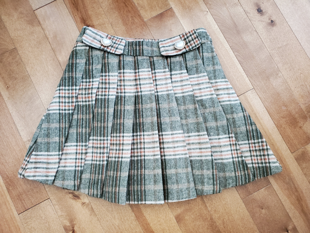Here's a cute plaid pleated mini skirt! It has a classic pattern and stylish design. Perfect for adding a touch of vintage charm to any outfit. Looks like new.