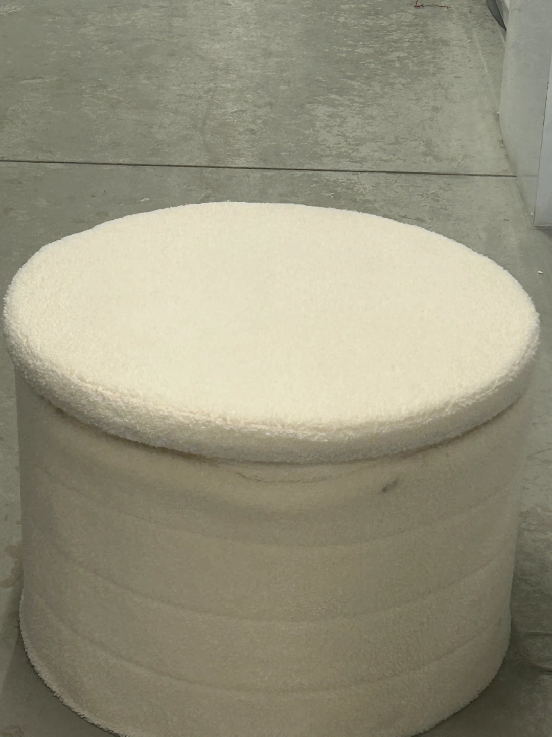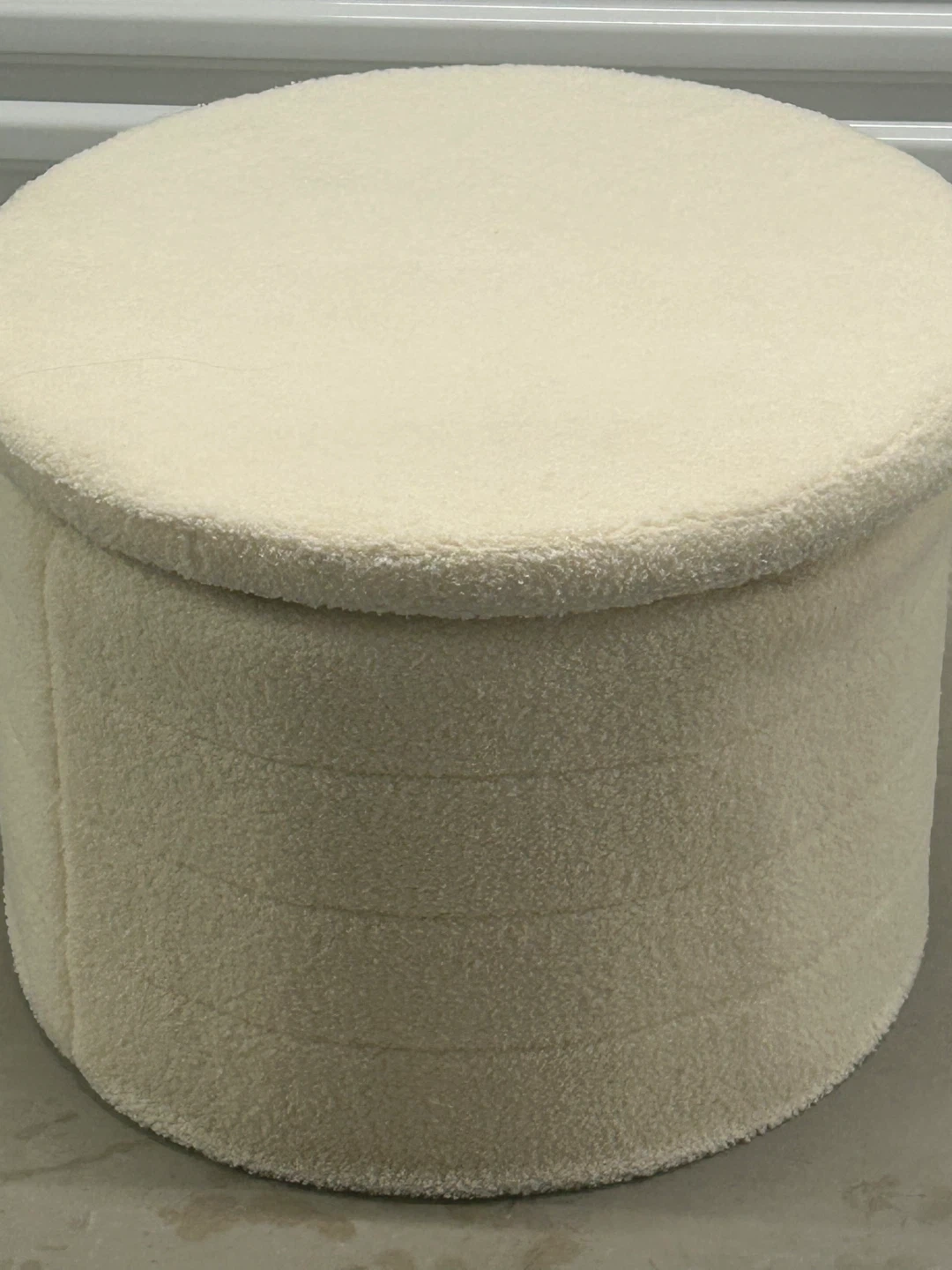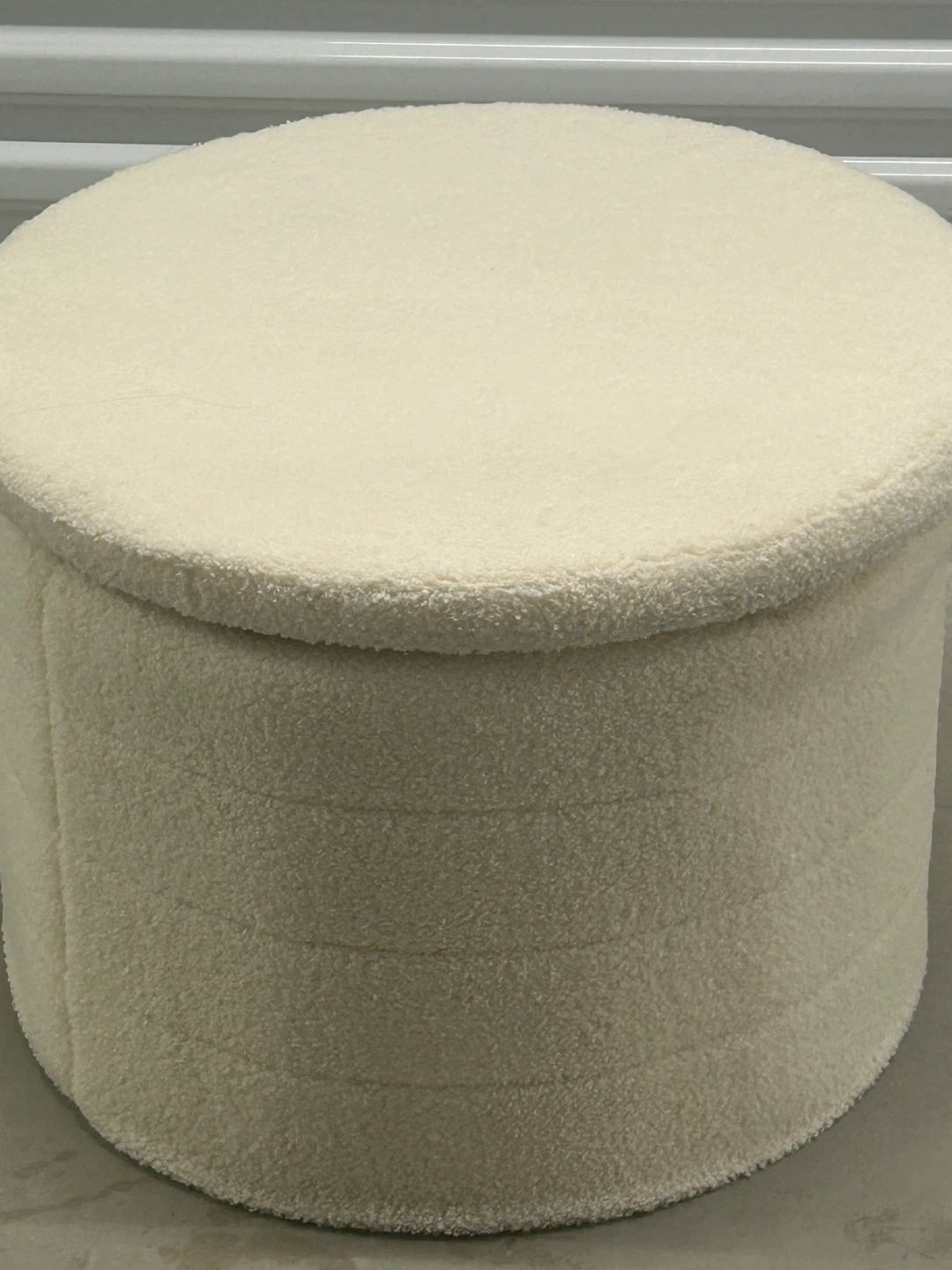 Amazon Price $66 Dimensions D 22” X L 15” Selling a cream-coloured ottoman that would be a great addition to any living space! It has a soft, textured fabric and a sturdy wooden top. It's in great condition and ready for a new home!