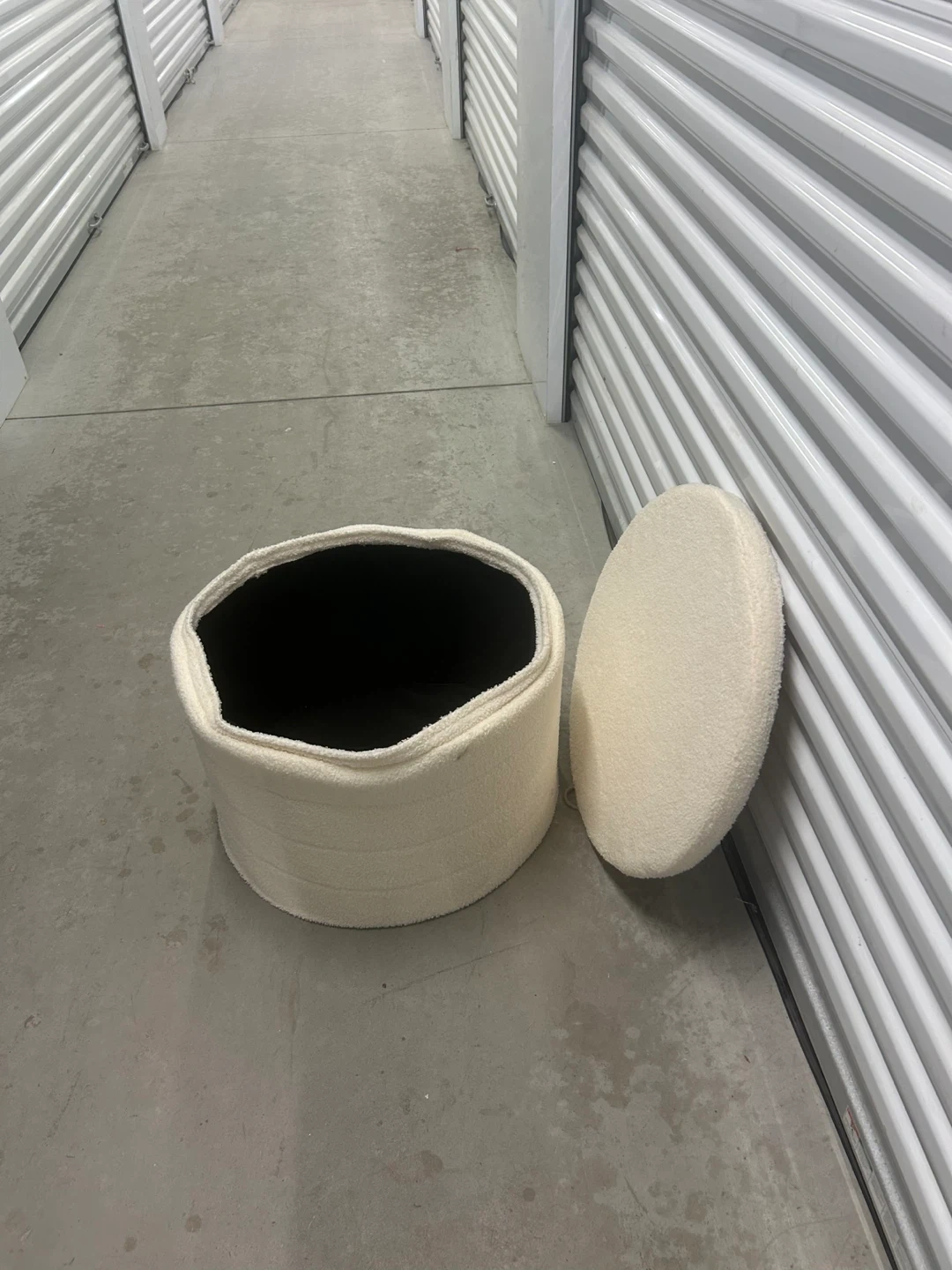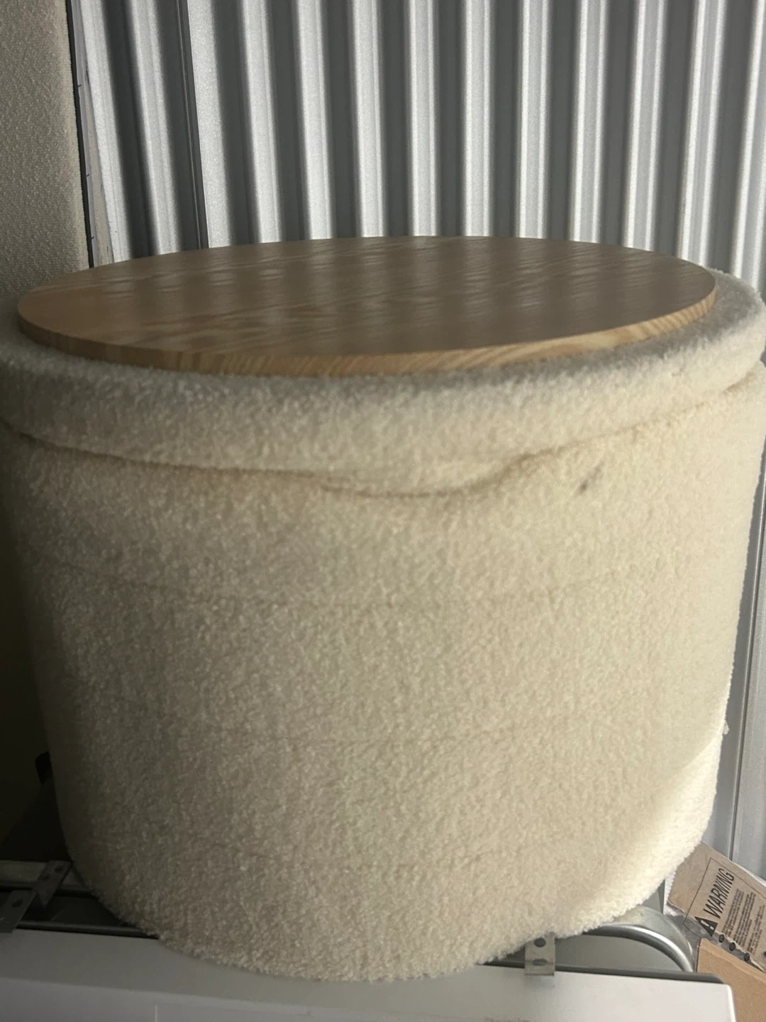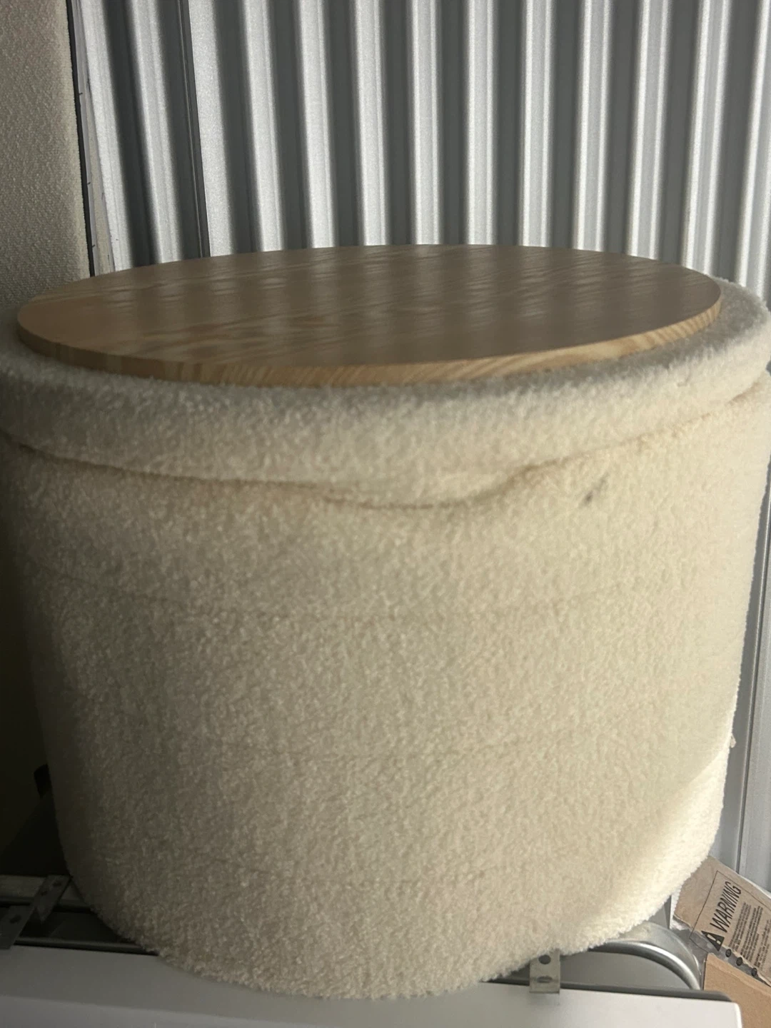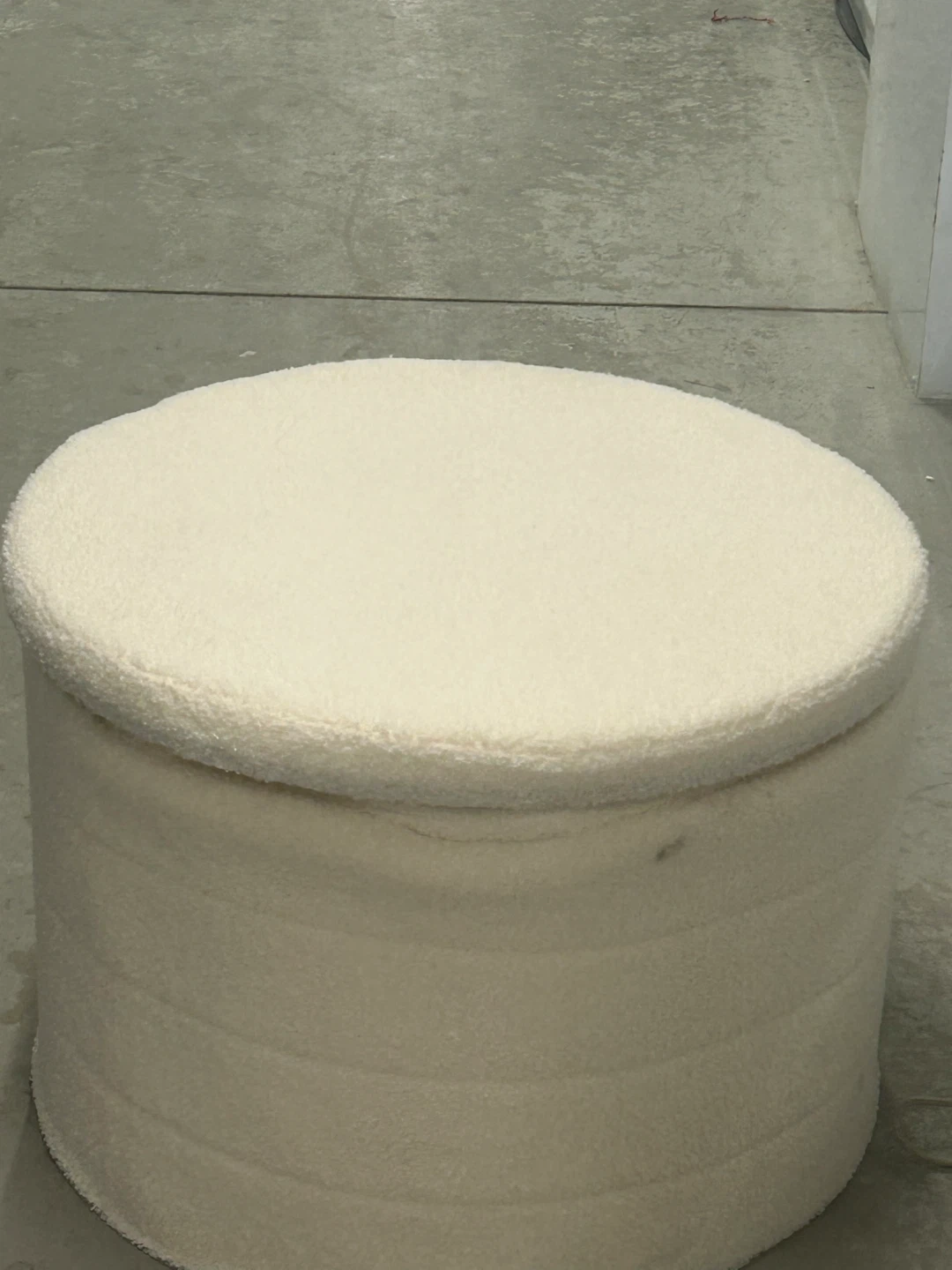 Amazon Price $66 Dimensions D 22” X L 15” Selling a cream-coloured ottoman that would be a great addition to any living space! It has a soft, textured fabric and a sturdy wooden top. It's in great condition and ready for a new home!