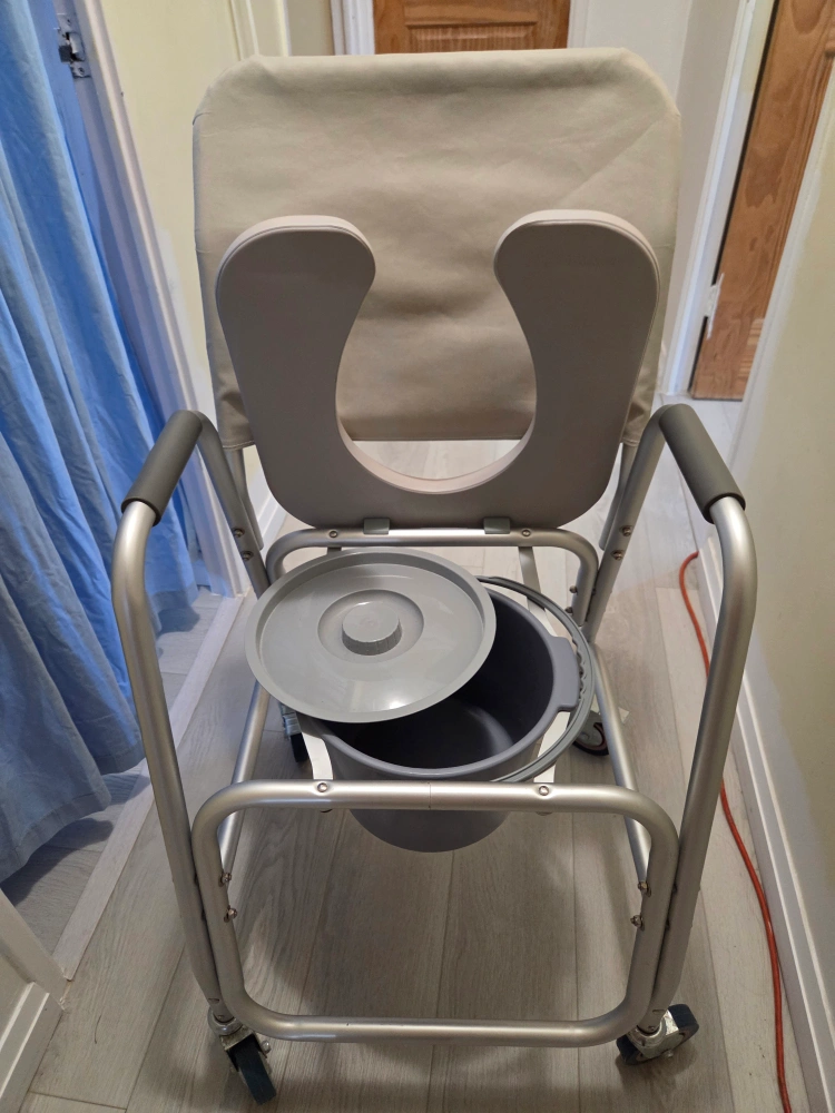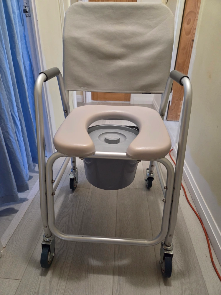 1.) Selling a mobility walker with a seat. It's in good condition and would be great for someone who needs a little extra support while walking. It has a comfortable seat for resting when needed. 2.) Commode with Basin & Lid. Brand New, open package Never been used 3.) Shower Chair Brand New never been used