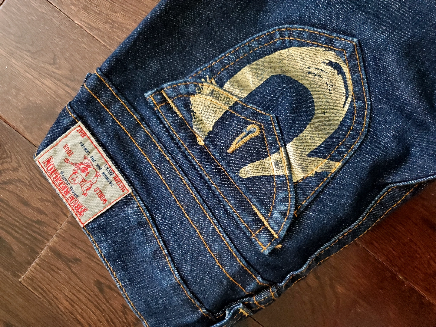Selling a pair of True Religion jeans in size 28! They're in almost new condition and feature the iconic True Religion logo on the back pocket. The material is 98% cotton and 2% spandex. These jeans are made in the USA. Jeans tailored, inseam is around 28.5 inches, outseam is around 37 inches.